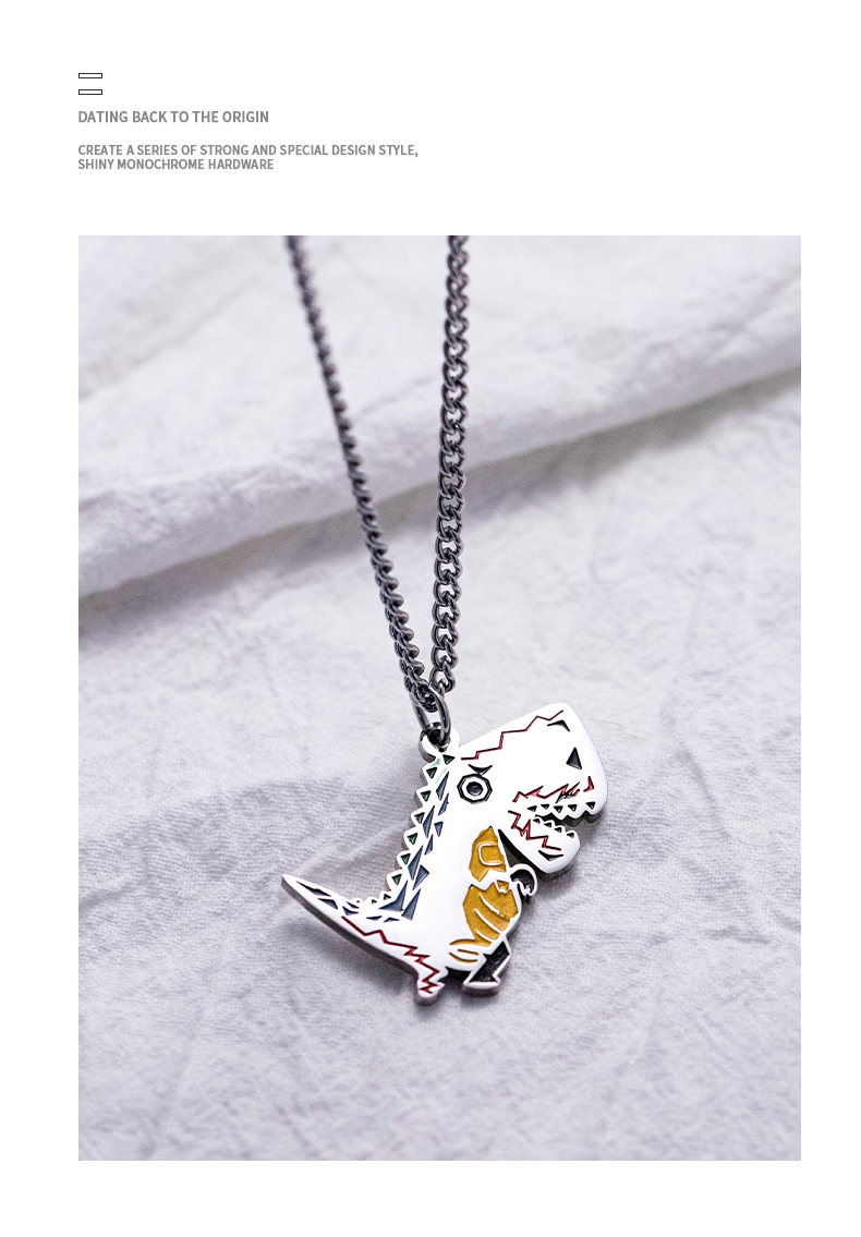 NYUK 韓版彩色小恐龍鈦鋼項鏈 嘻哈潮人男女個性學生百搭生日禮物