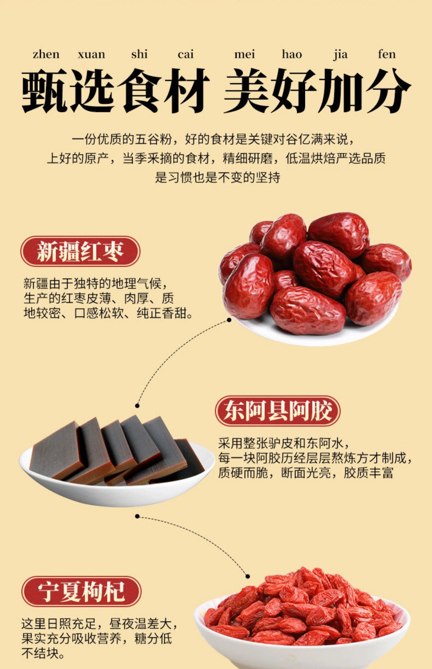 紅棗阿膠枸杞粉熟補沖飲氣五谷血飽腹女早餐營養即食代餐粉谷億滿