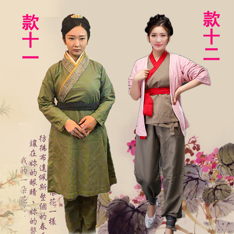 影視古裝女士棉麻村姑服老婦人漢服