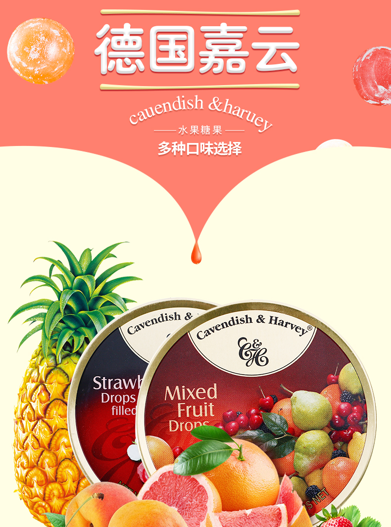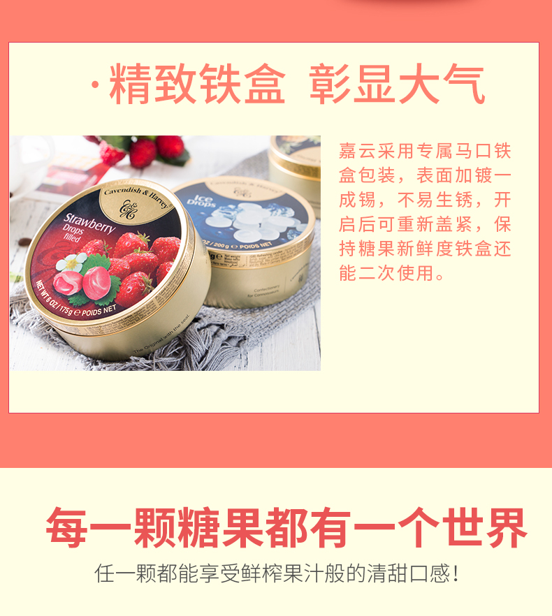 德國進口嘉云糖200g混合水果味鐵盒水果糖薄荷硬糖果零食禮盒罐裝