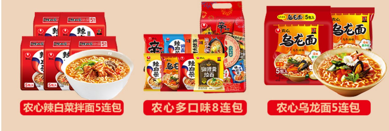 韓國進口農心安城湯面韓式泡面經典辛拉面夜宵方便面5袋裝速食品