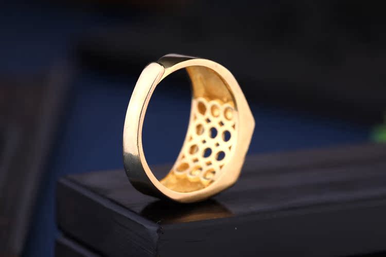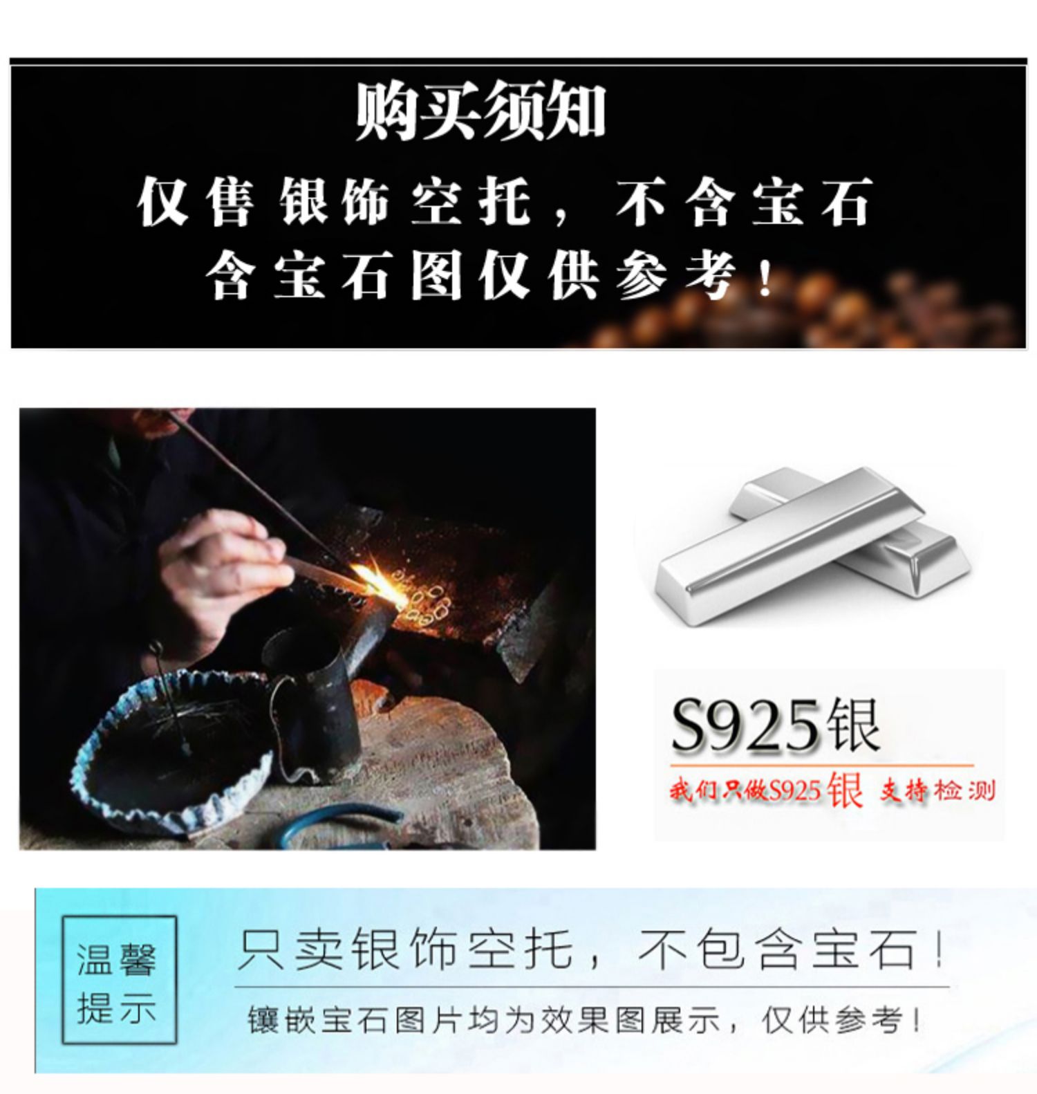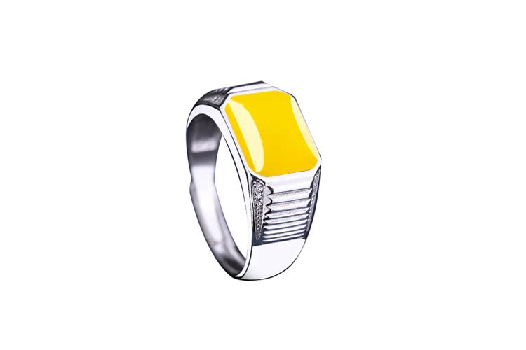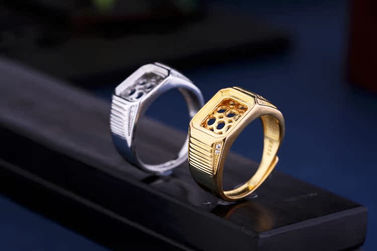 s925純銀戒指空托男鑲嵌翡翠*蜜蠟
