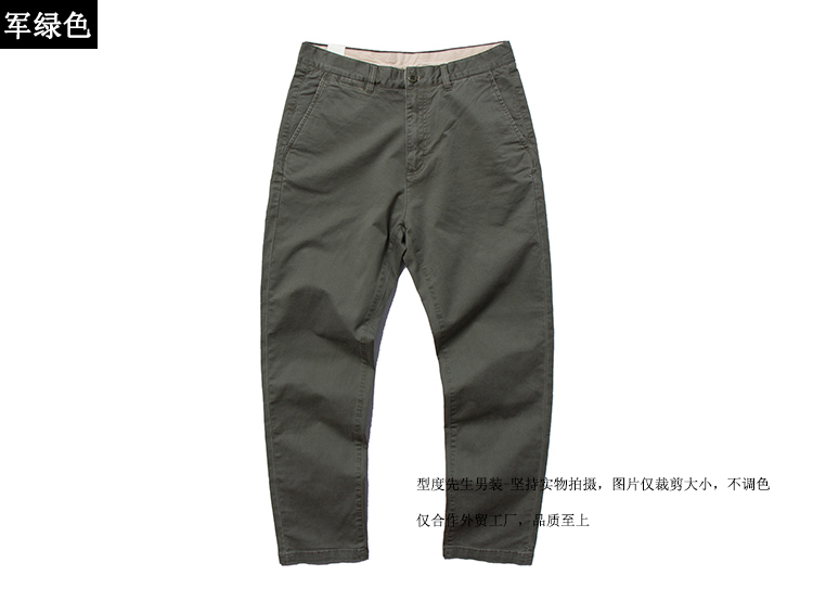 LEEMOO/李某 寬松直筒休閑褲洗水做舊柔軟棉質軍綠色顯高長褲