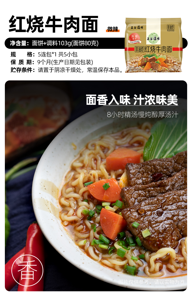 五谷道場旗艦店非油炸方便面紅燒牛肉面整箱裝網紅速食十大泡面