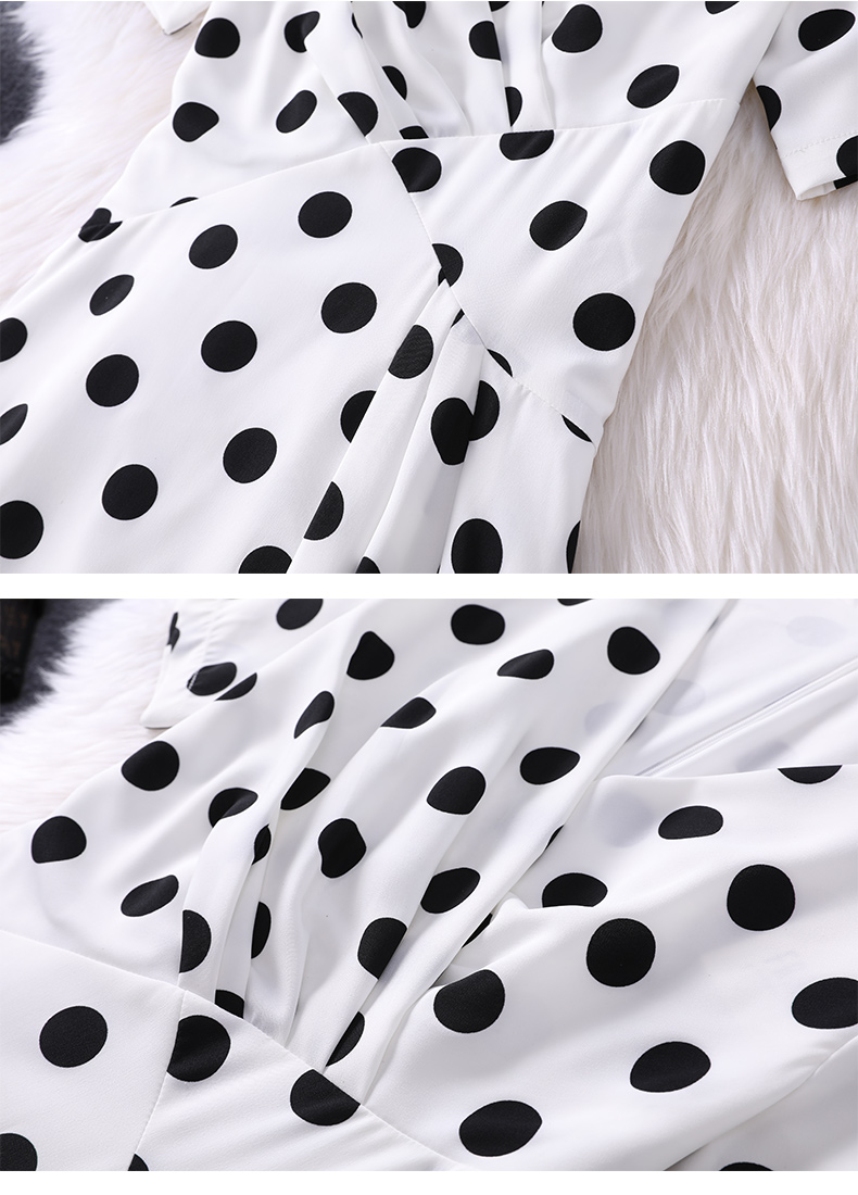 波點春秋雪紡收腰顯瘦氣質大擺裙子