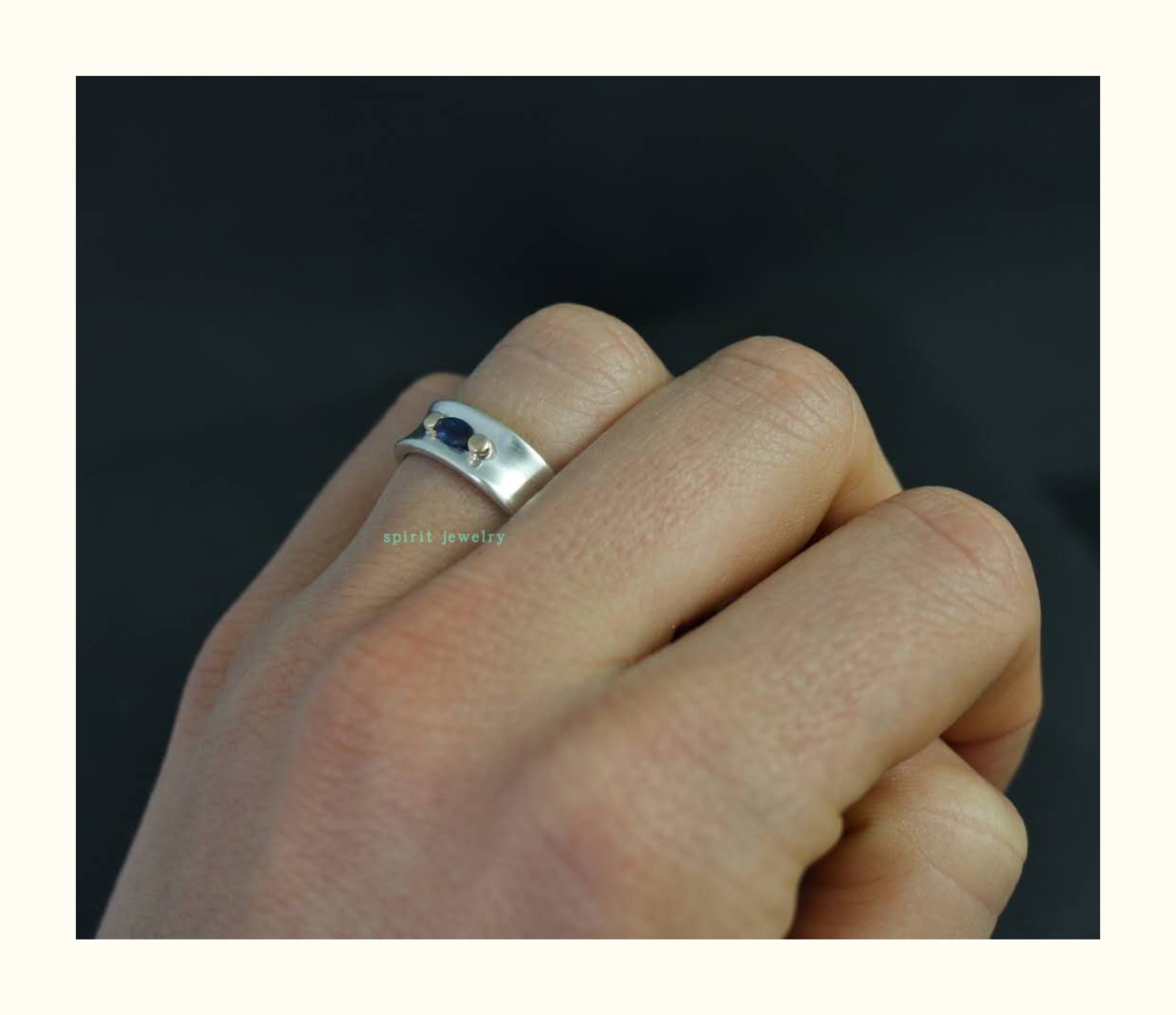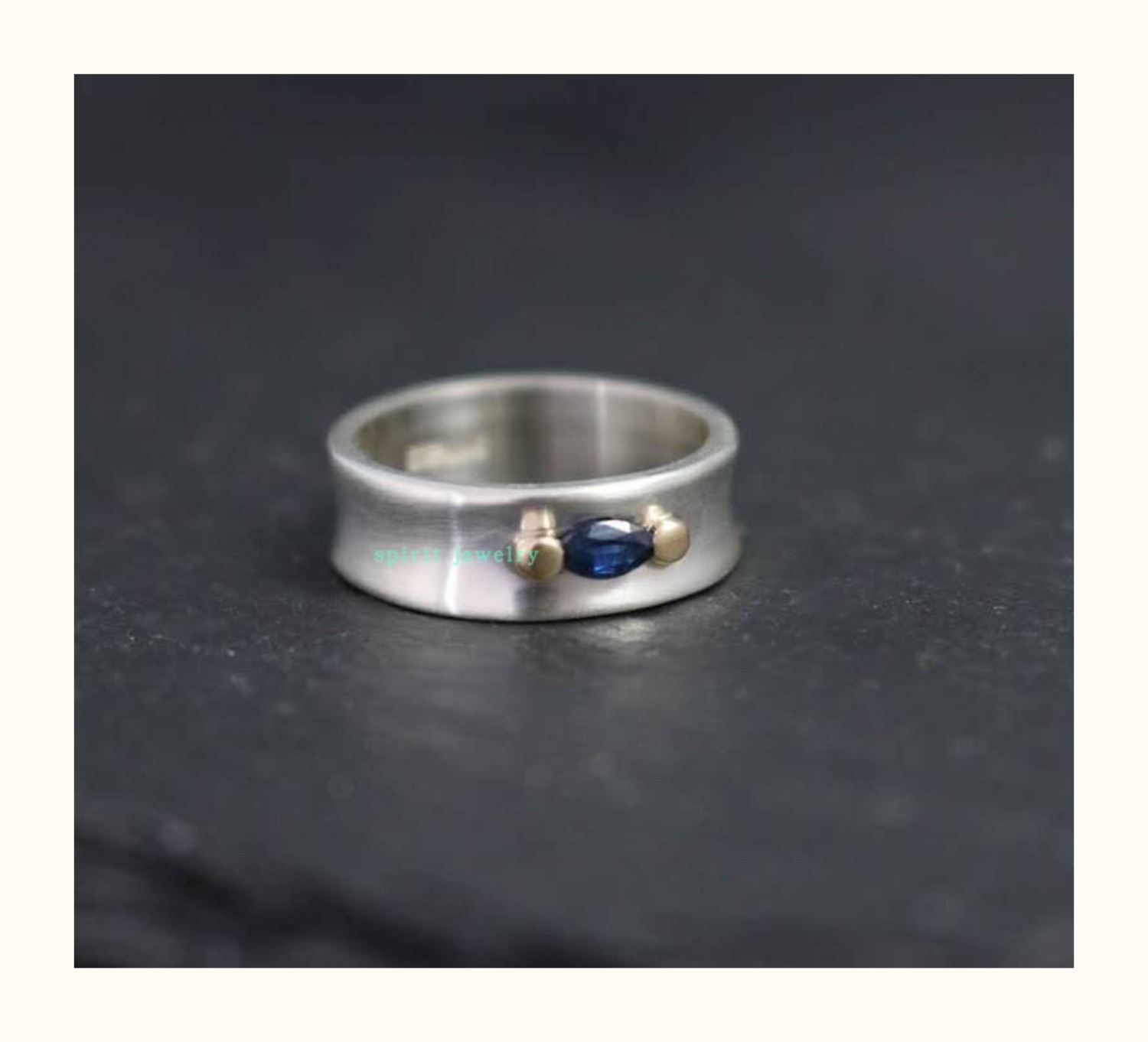 純銀戒指S925寶石飾品外鑲嵌簡約寬k金固定工藝原創設計情侶新款