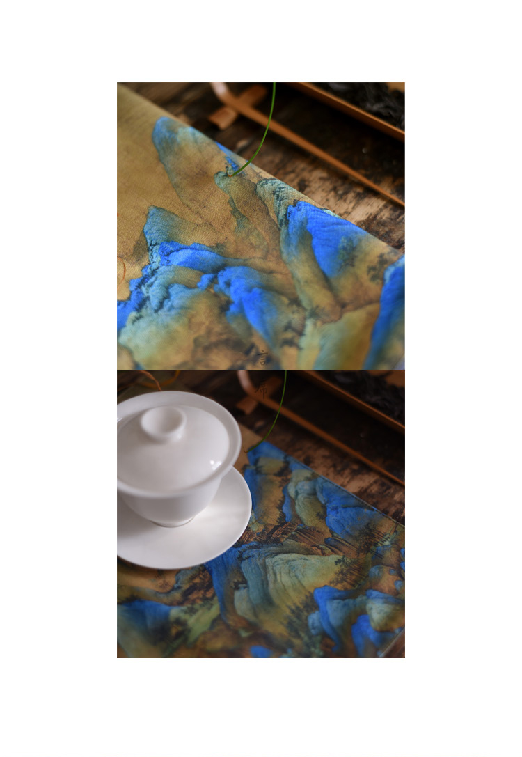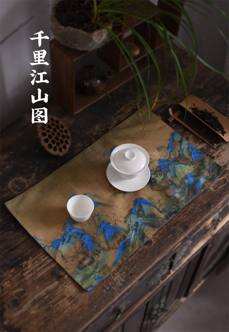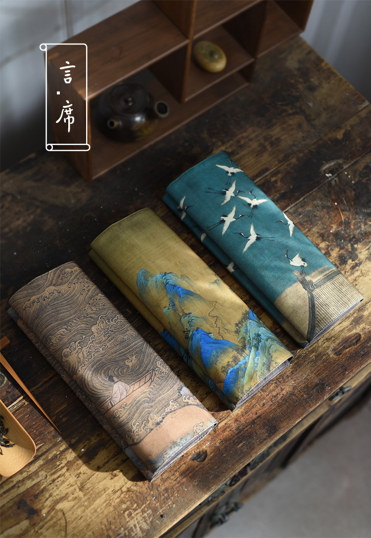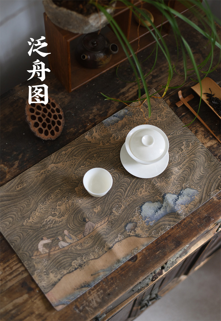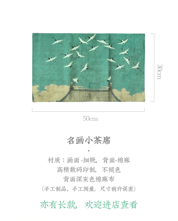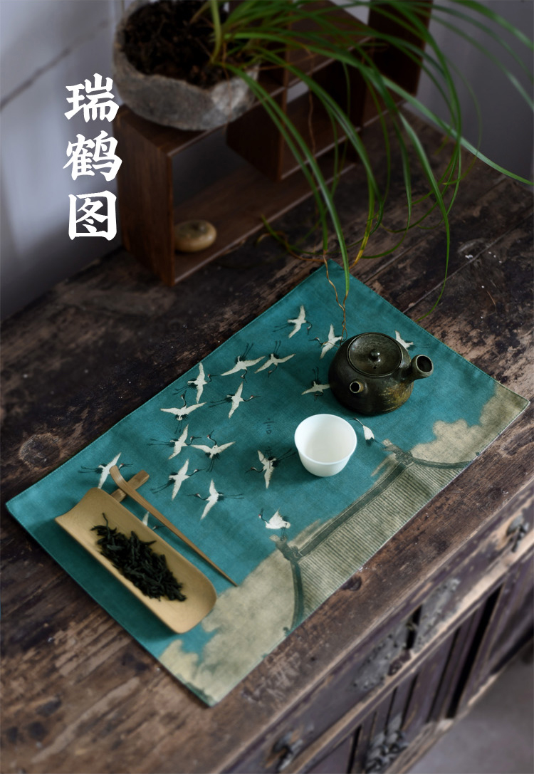 中國風名古畫印刷功夫茶桌墊布禪意布藝隔熱墊瑞鶴圖泛舟圖小茶席
