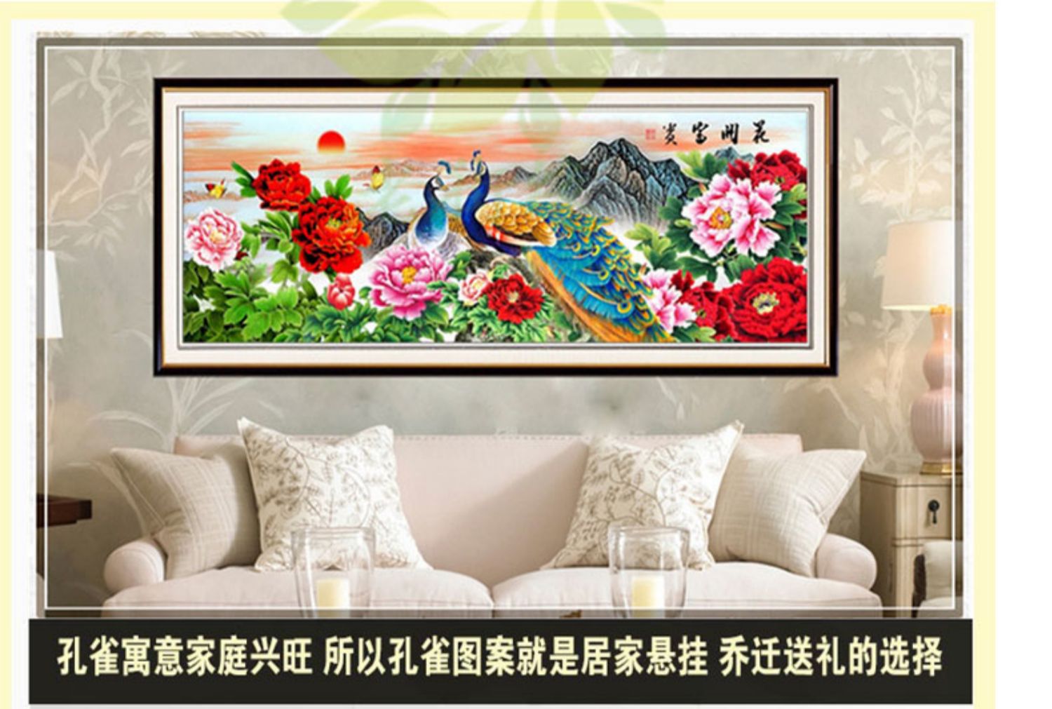 花開富貴十字繡2023新款線繡刺繡客廳自己繡簡約現代牡丹孔雀大幅