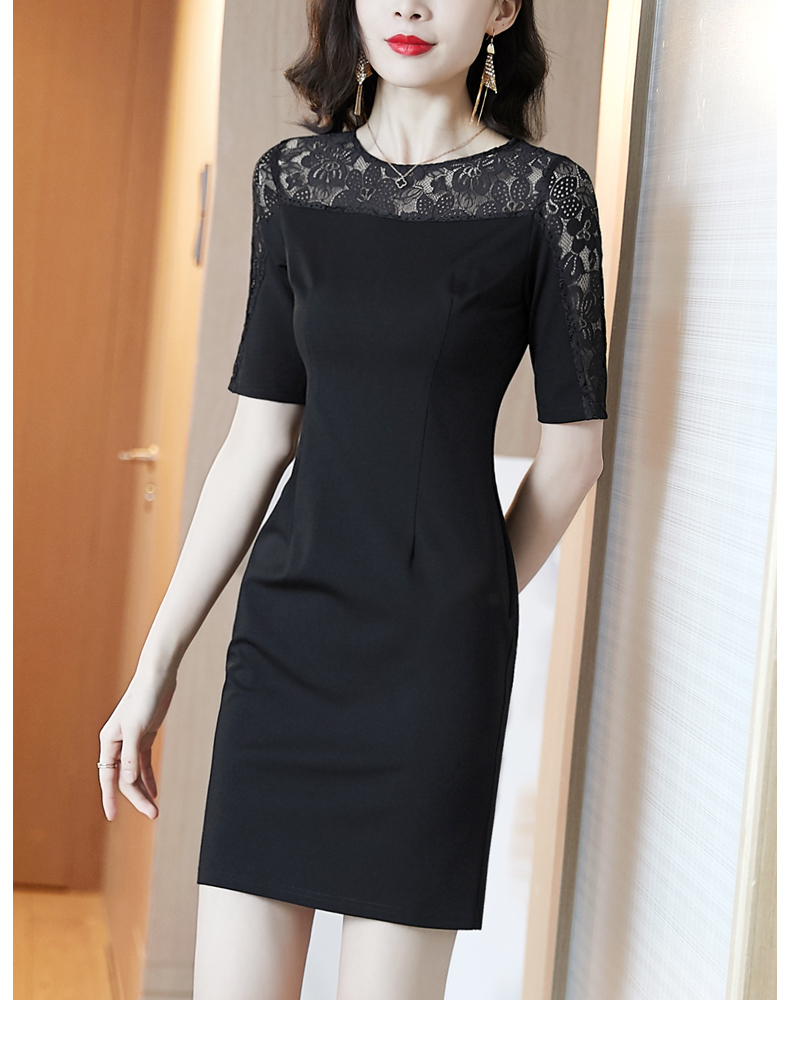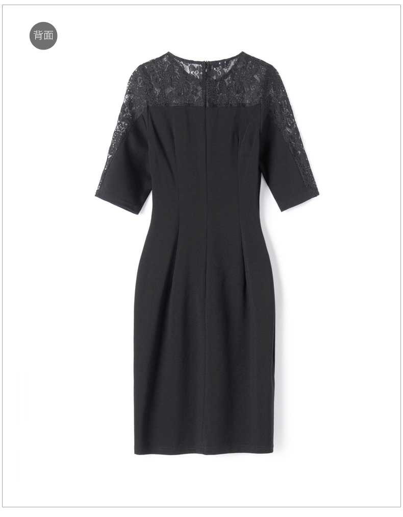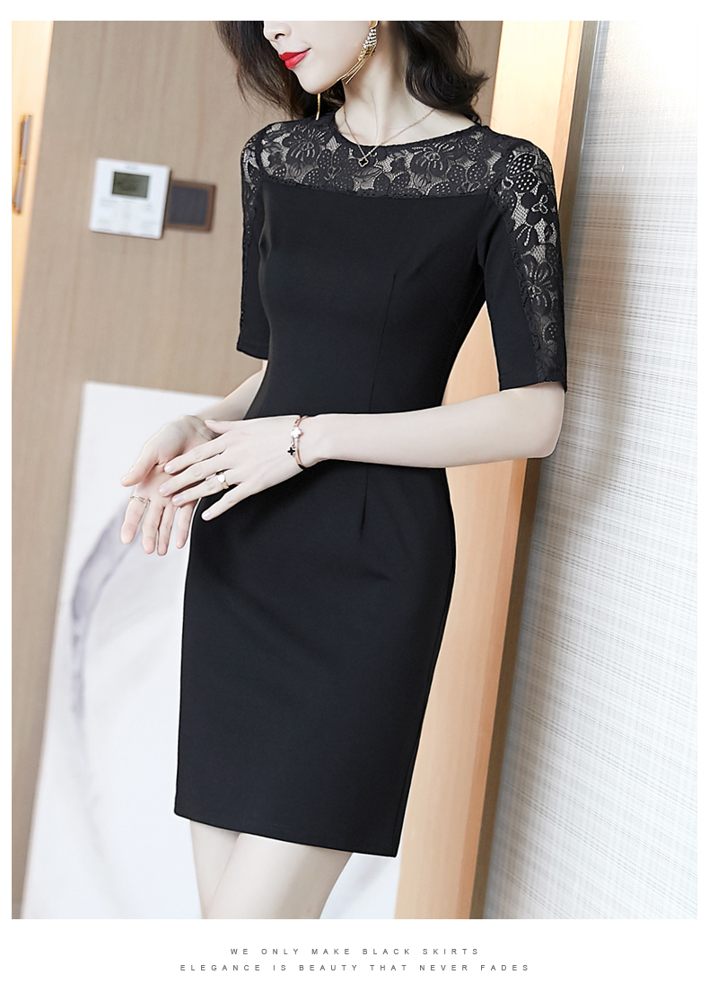 黑色修身連衣裙高級感2023夏季新款通勤ol職業蕾絲拼接包臀裙子女