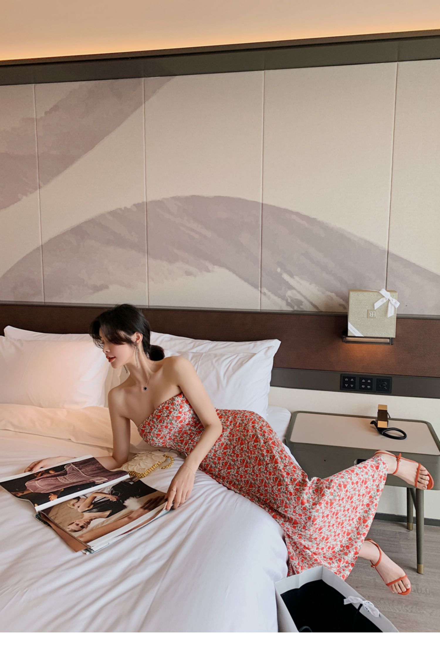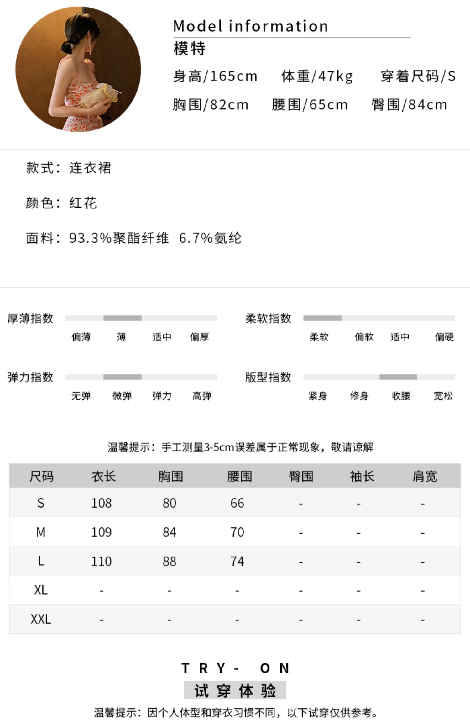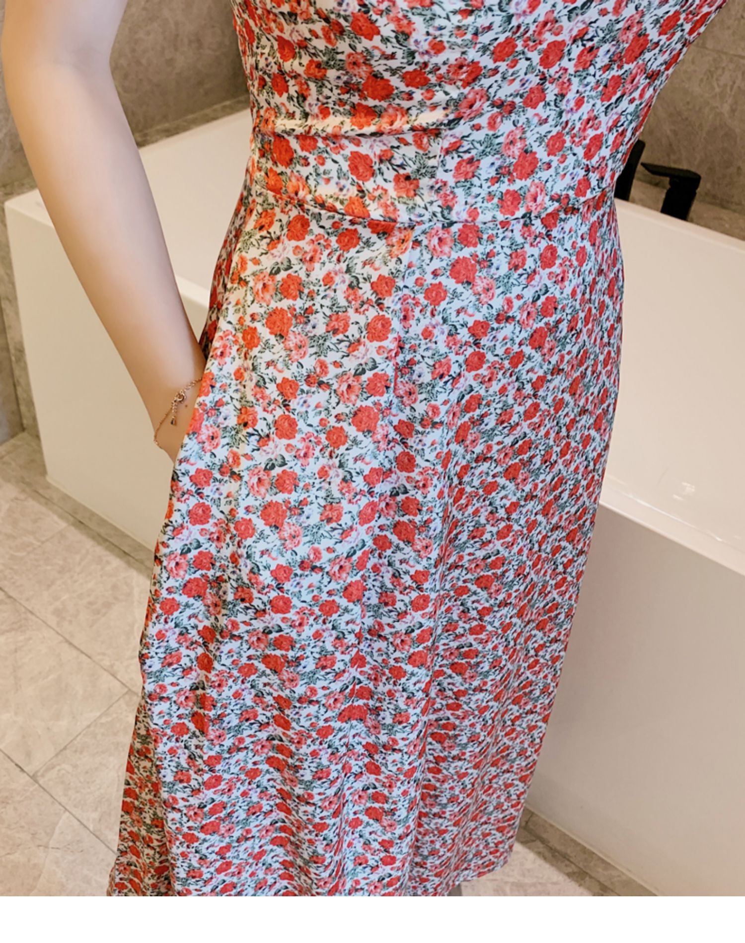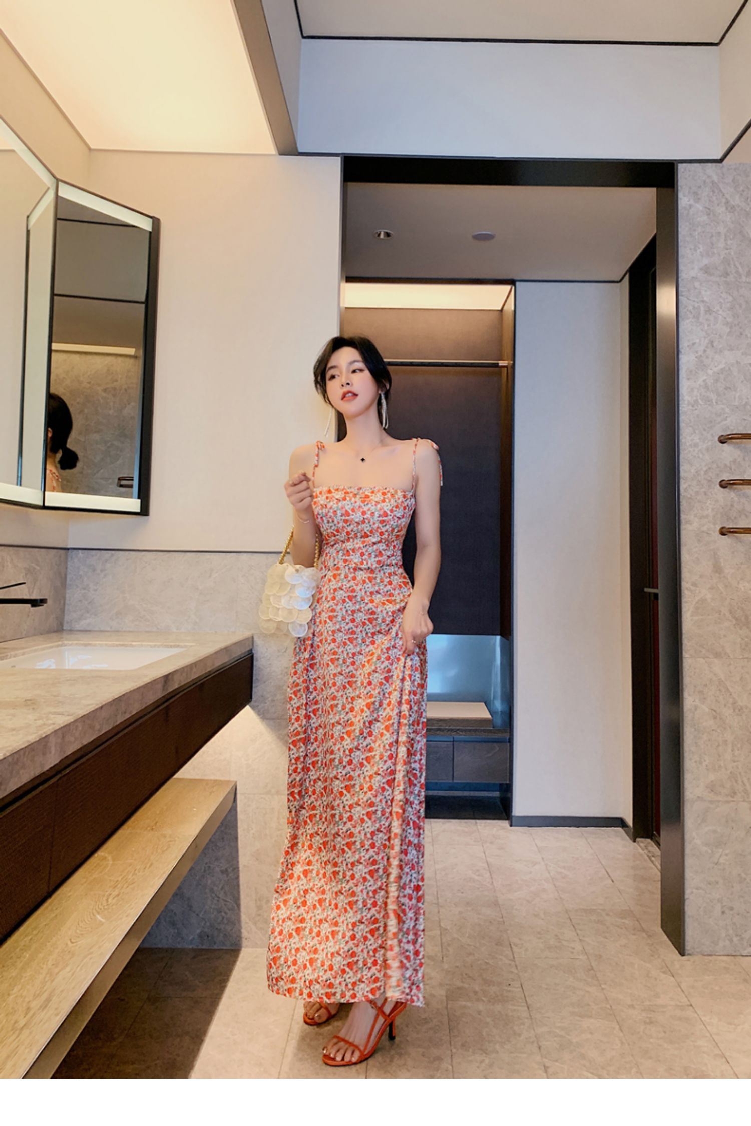 中長款雪紡連衣裙夏季新款2023法式復古桔梗碎花小雛菊吊帶中長裙