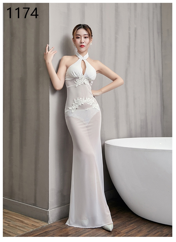 新款性感透視連衣裙夜場小姐情趣真空晚禮服低胸掛脖長裙夜店女裝
