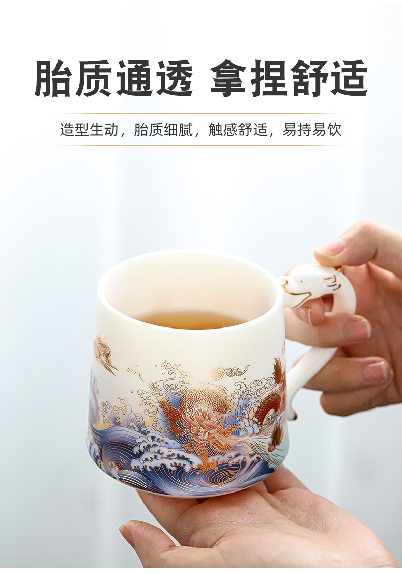 陶藝公社 馬到成功辦公杯羊脂玉白瓷高端家用會議茶水分離馬克杯