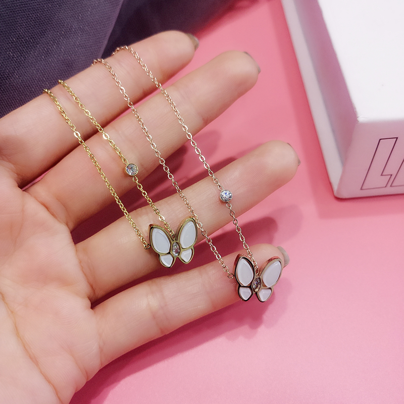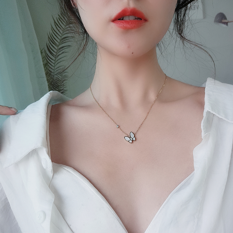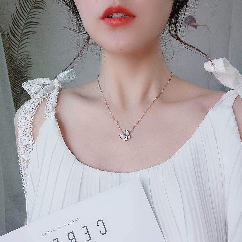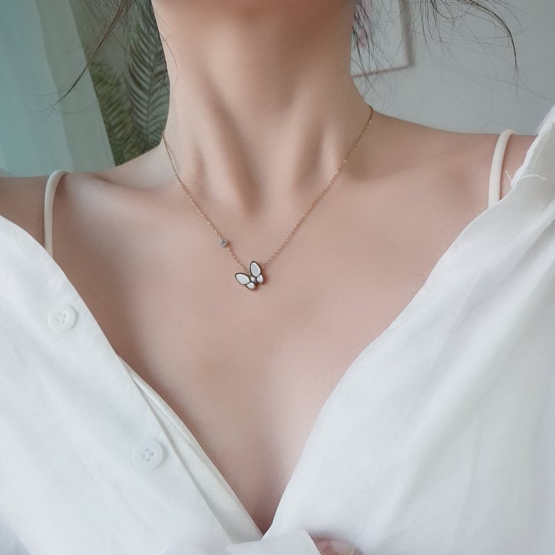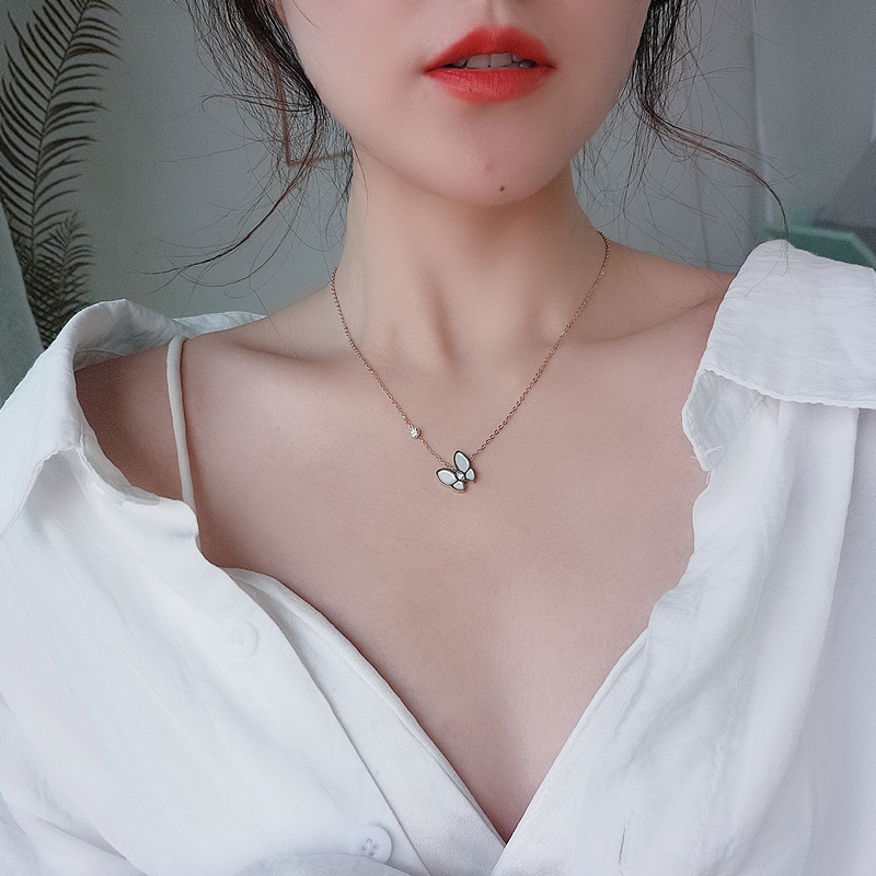 新款鈦鋼項鏈白貝母蝴蝶吊墜氣質鎖骨鏈鍍18K玫瑰金ins冷淡風頸鏈