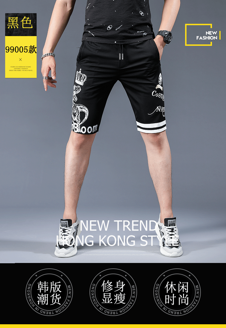 歐洲站夏季新款短褲男韓版修身男生帥氣五分沙灘褲潮牌印花中褲薄