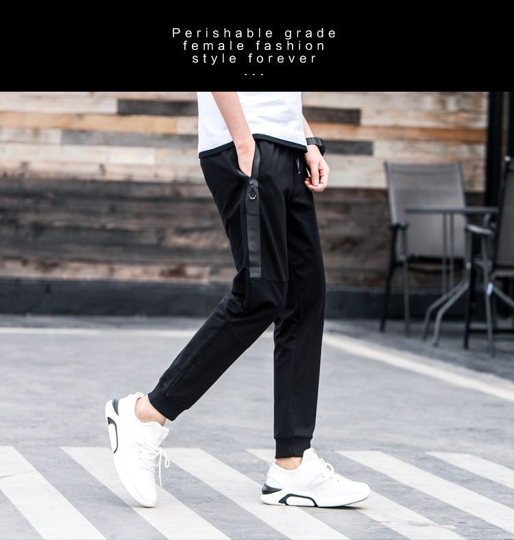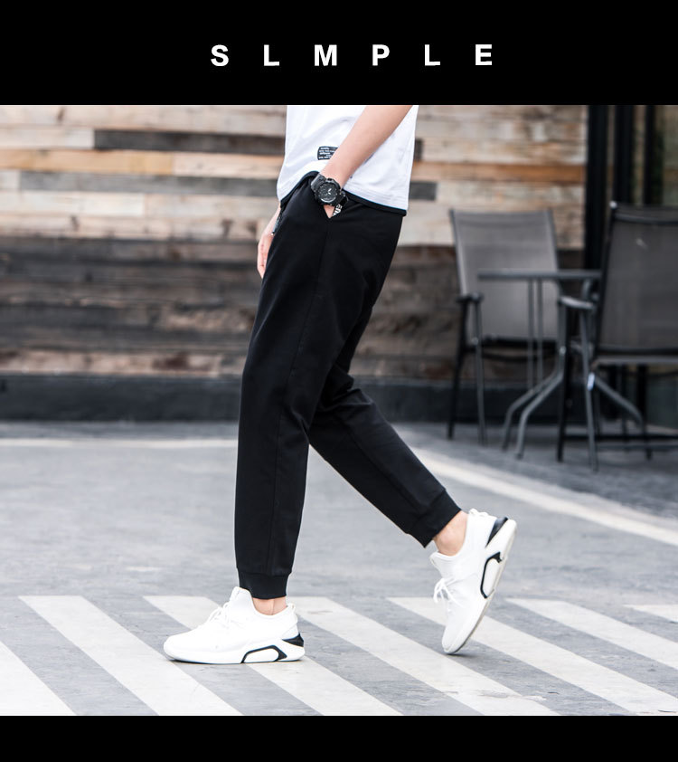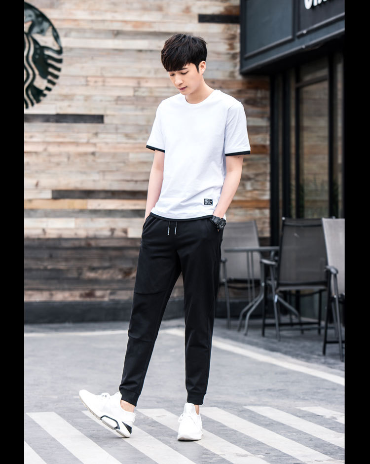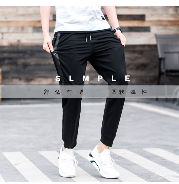 抽繩束腳褲夏季寬松直筒針織男衛褲