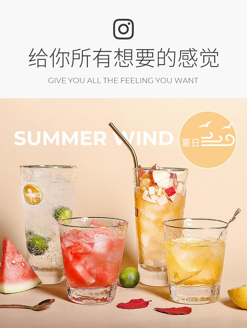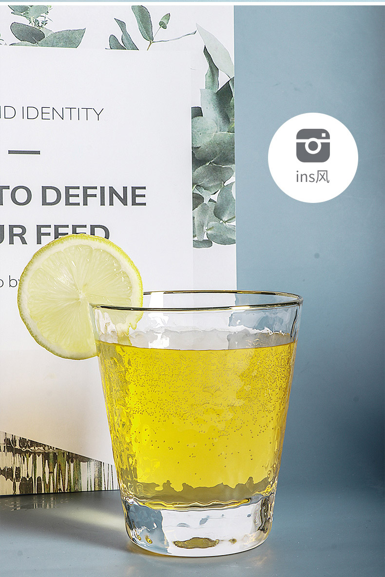 天喜錘紋玻璃杯日式金邊水杯家用ins風簡約杯子果汁飲料茶杯套裝