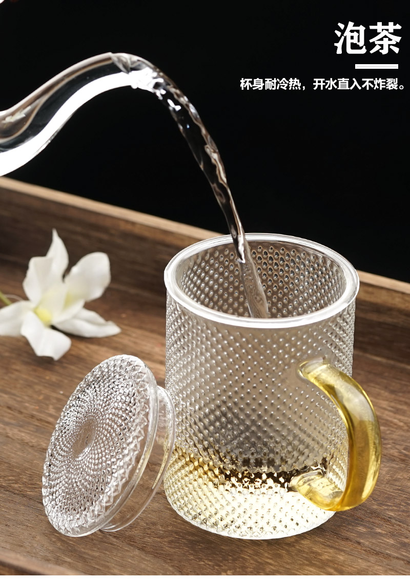 玻璃茶杯耐高溫綠茶專用泡茶杯辦公室水杯帶蓋家用喝茶杯子花茶杯