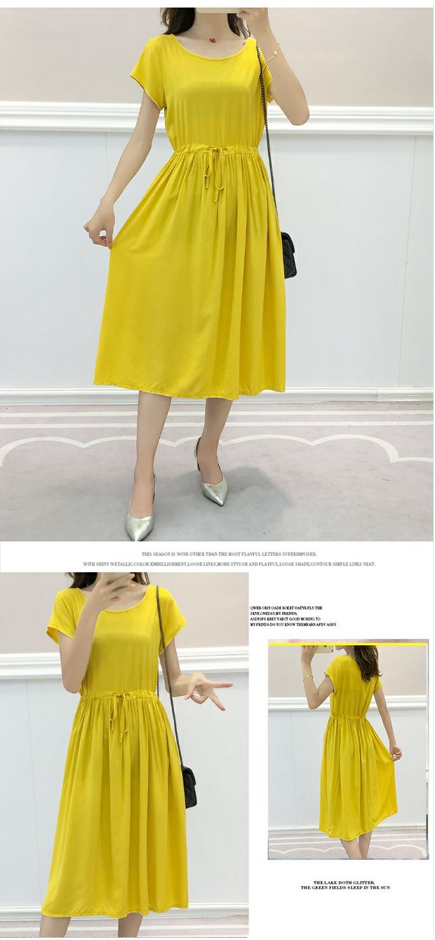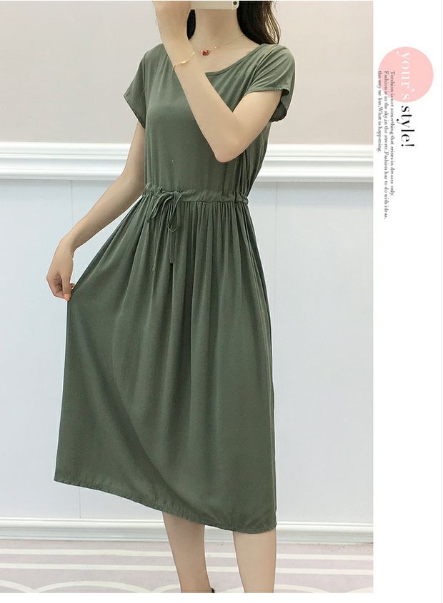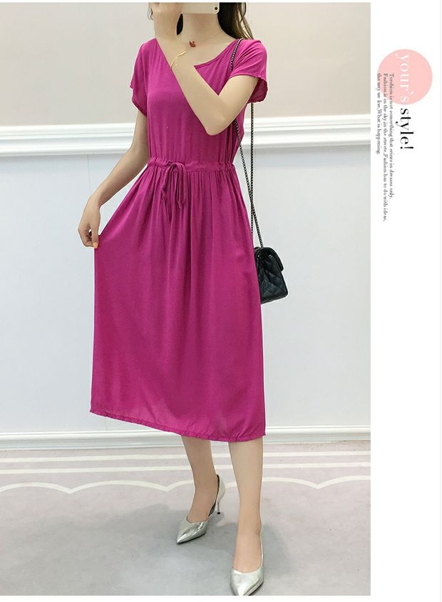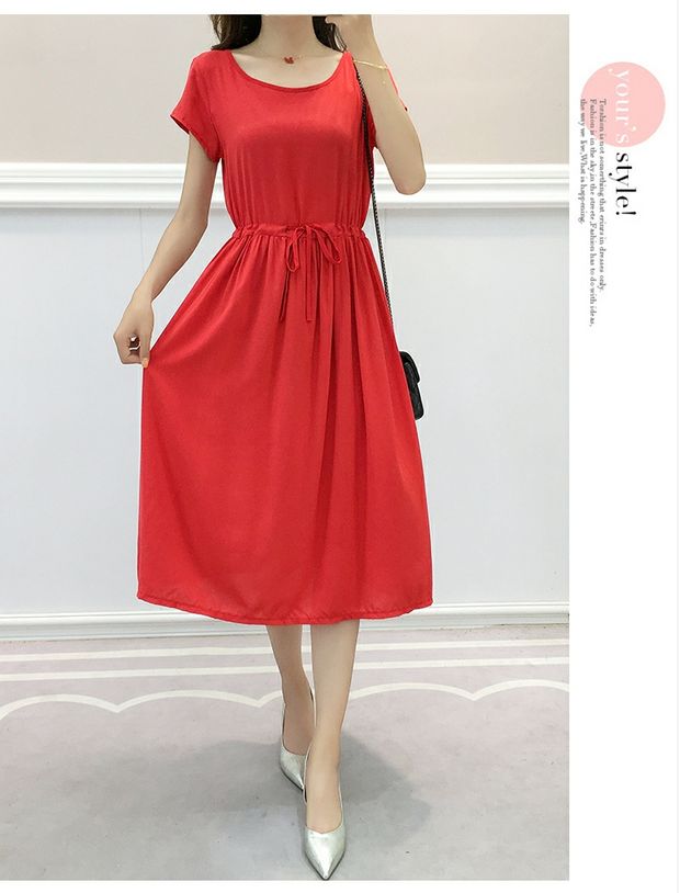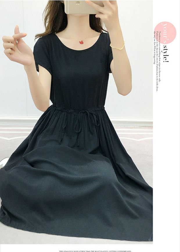純色棉綢連衣裙夏季時尚外穿中長款大擺沙灘裙顯瘦綿綢人造棉大碼