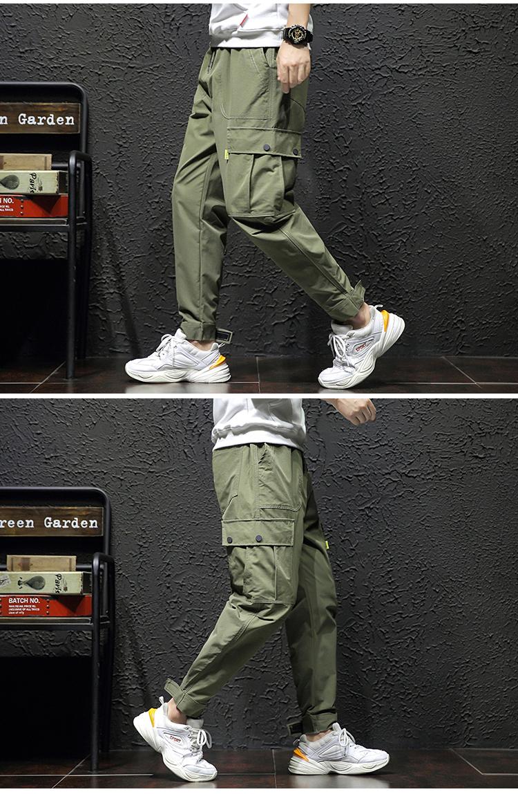 夏季寬松束腳男冰絲哈倫胖子工裝褲