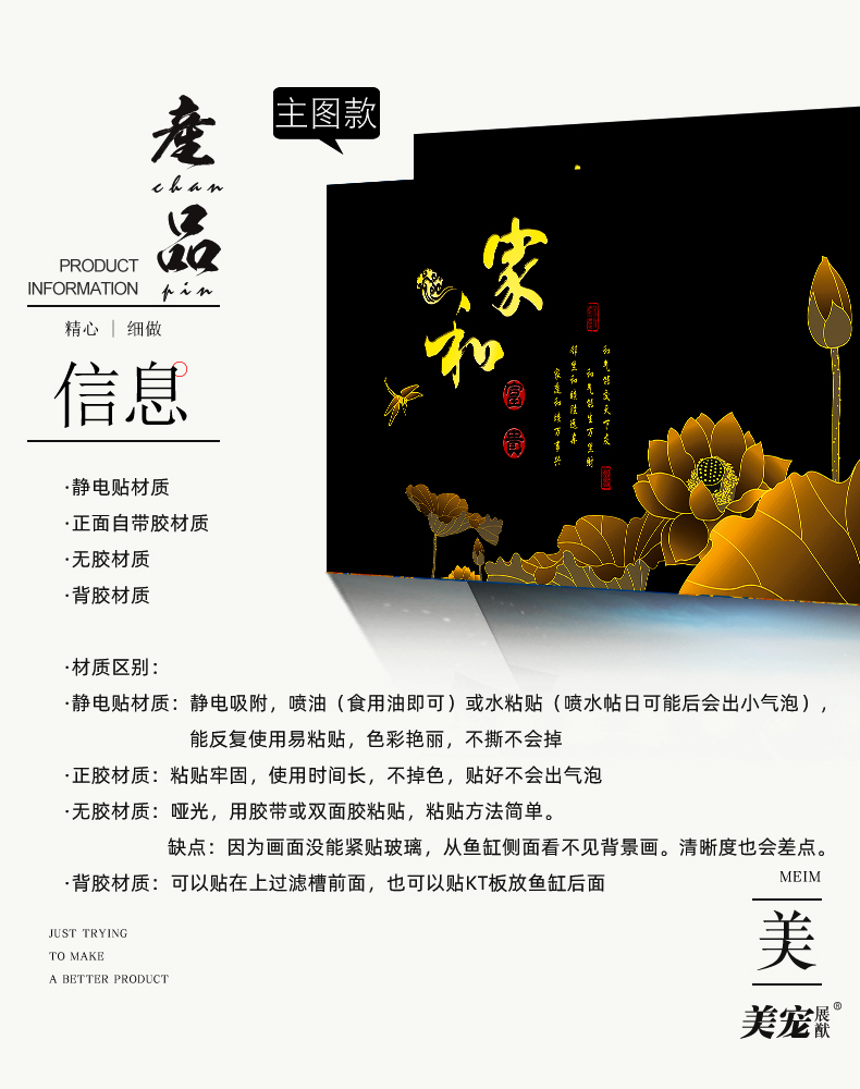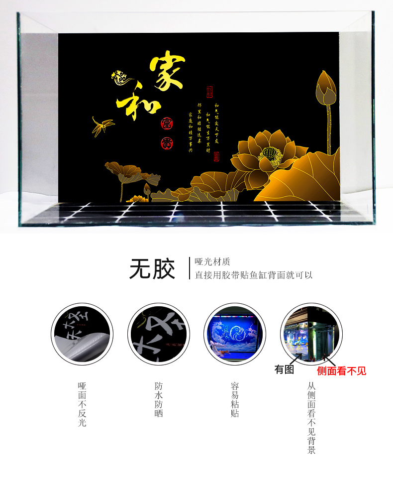 美寵展猷定制魚缸背景貼紙高清裝飾畫家和萬事興貼膜壁紙JH-66