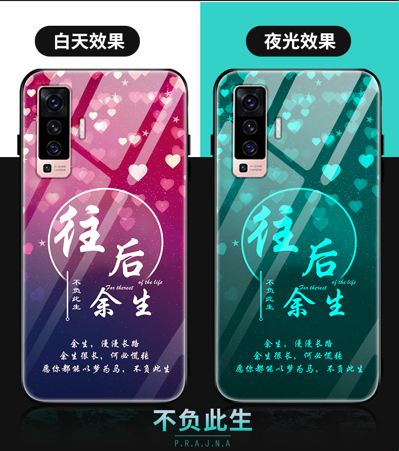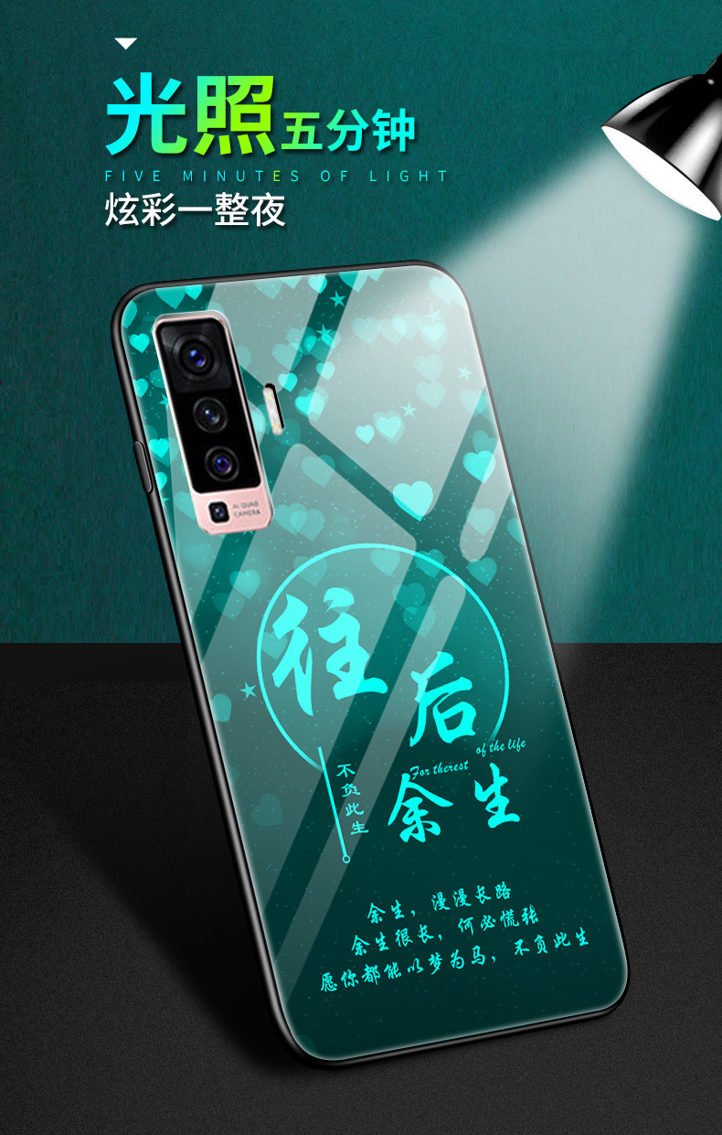 vivox50手機殼夜光玻璃殼vivo x50pro保護套vovix5o硅膠軟邊x50pr0全包防摔硬殼5g男女款vlv0x50por網紅后殼