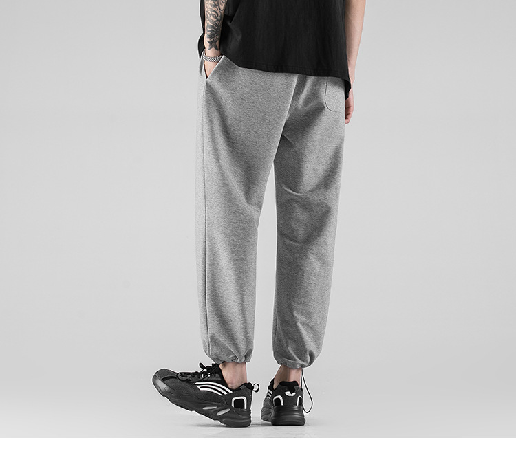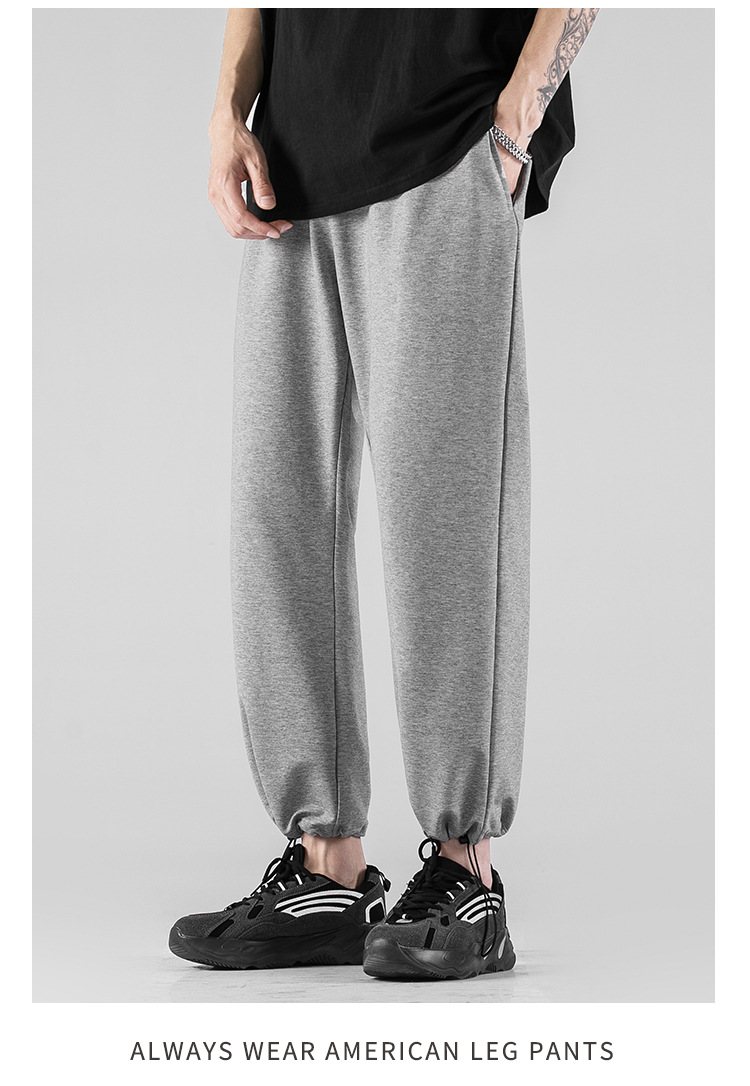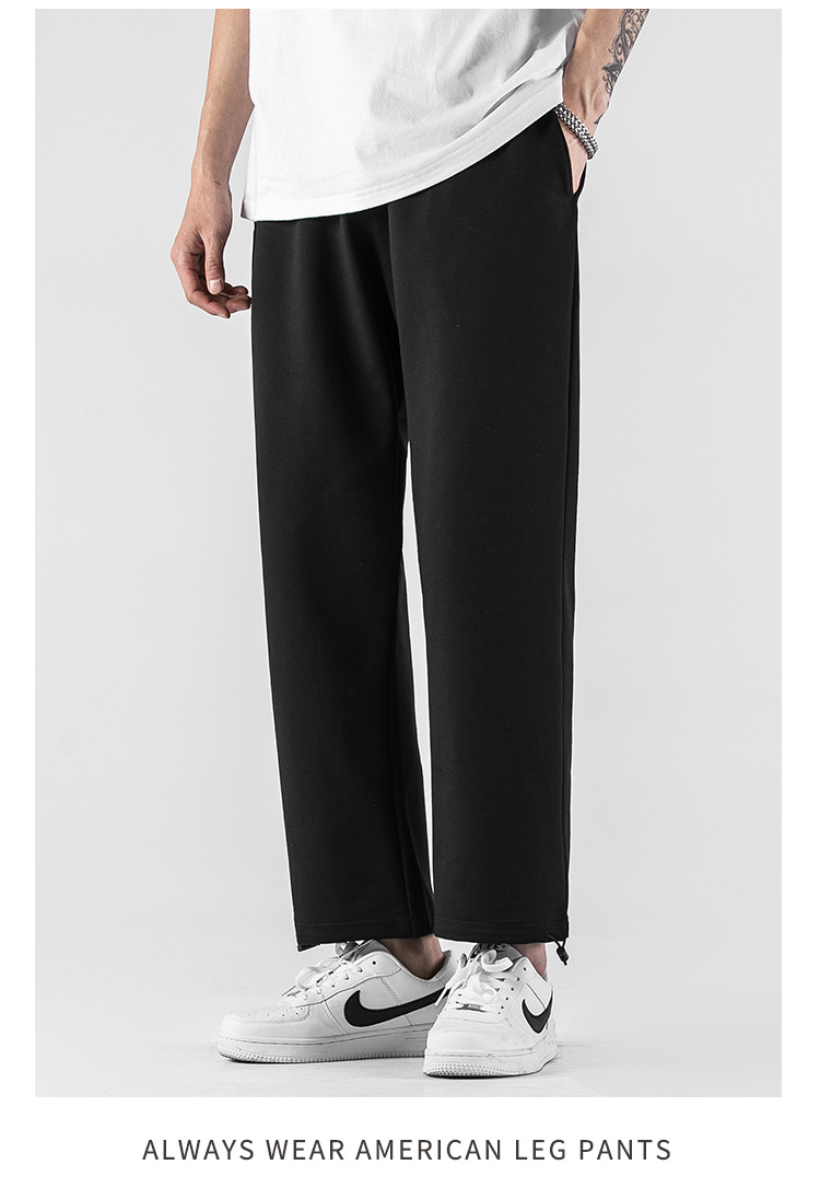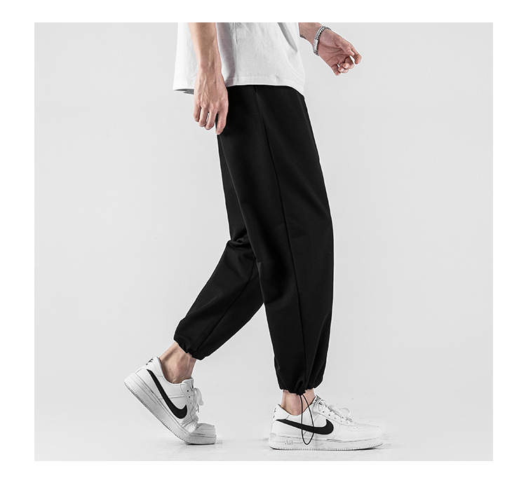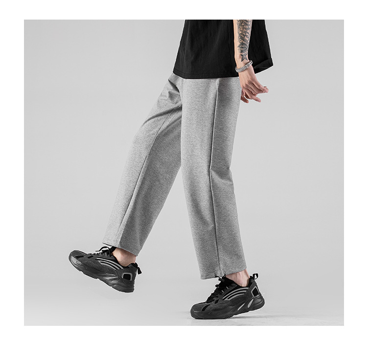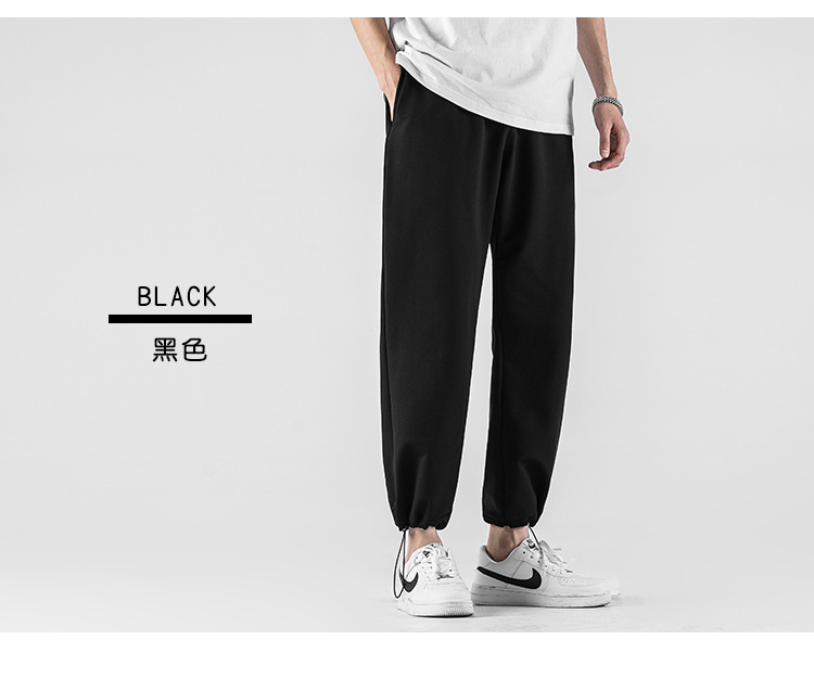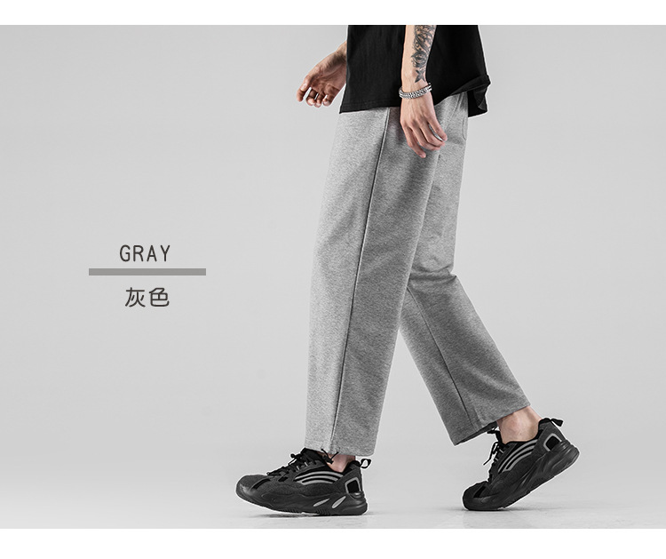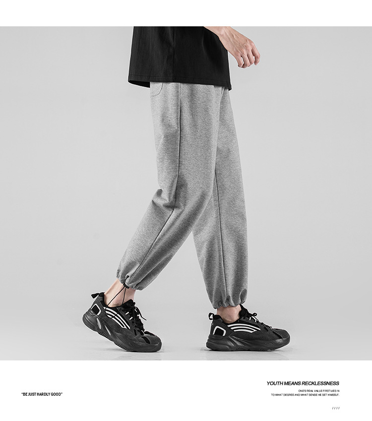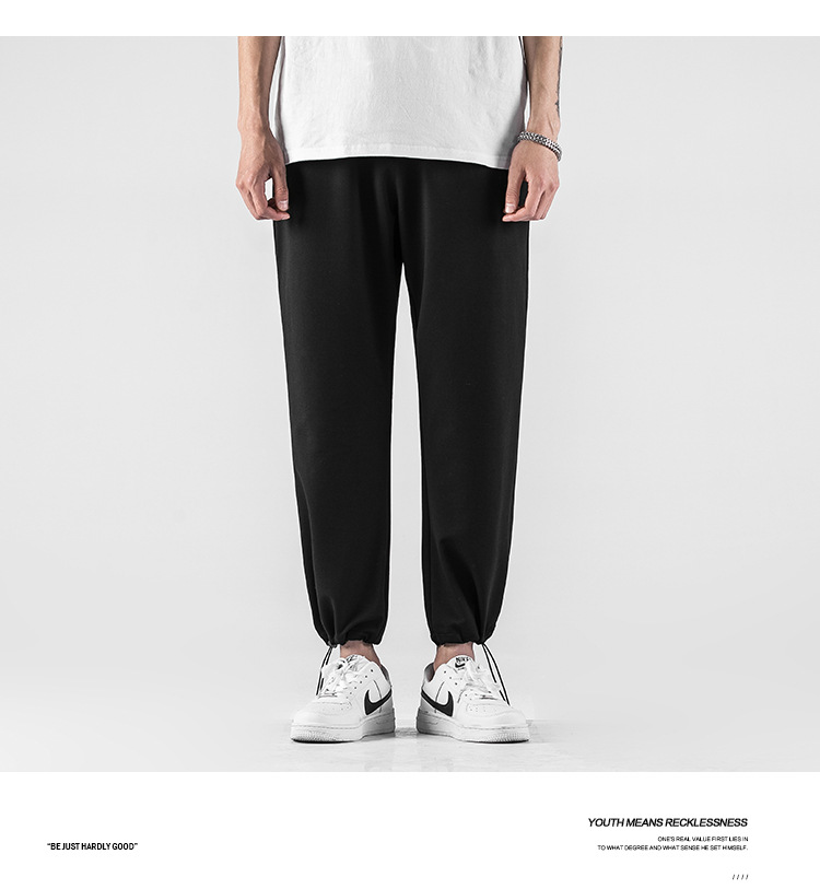 抽繩束腳褲夏季寬松直筒針織男衛褲