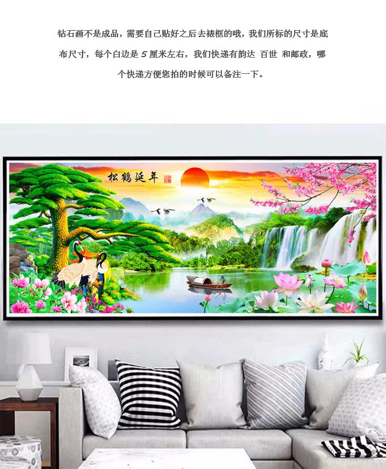 2023新款鉆石畫手工貼鉆十字繡松鶴延年客廳迎客松流水生財鉆石繡