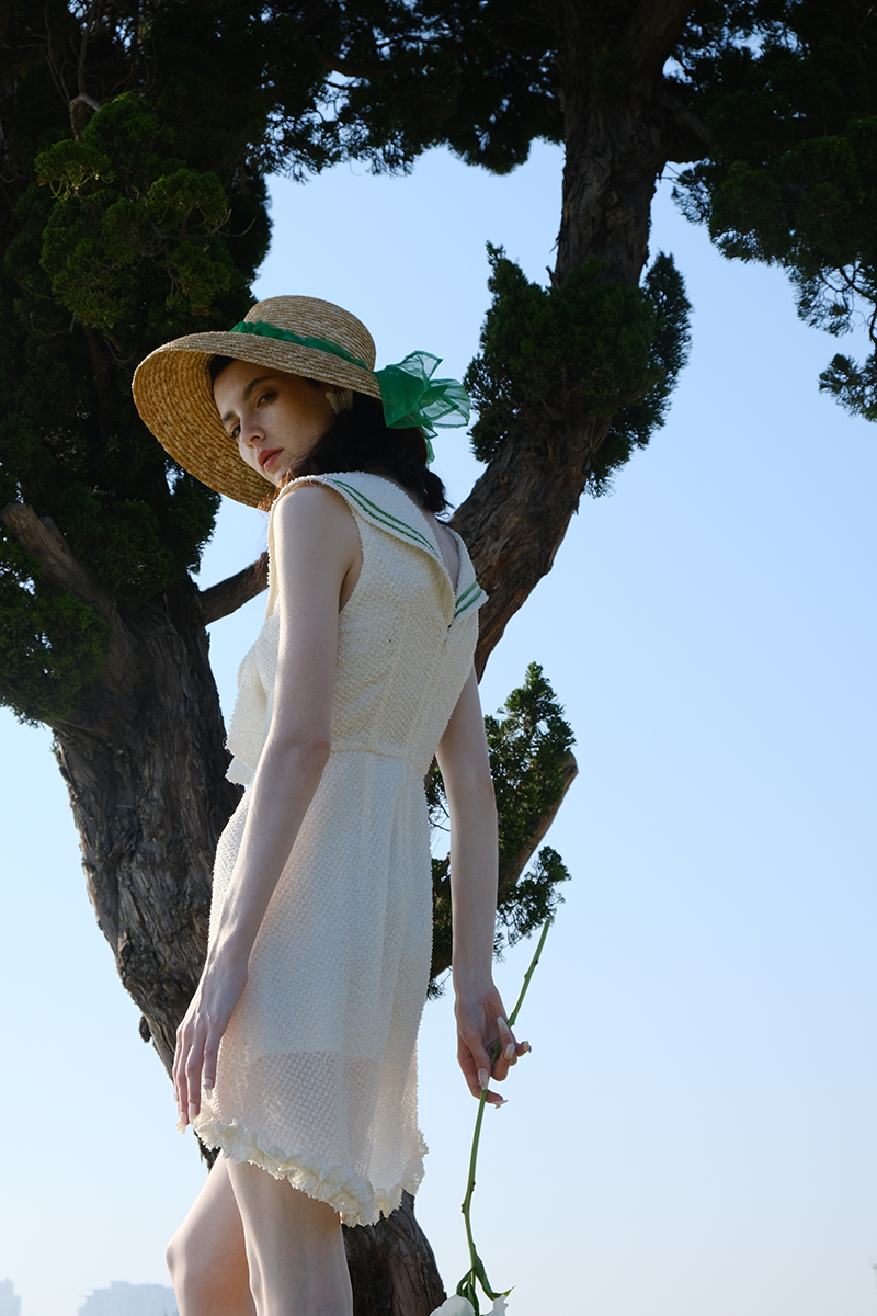 制造后花園*L'amant系列復古海軍領金絲提花拼接度假風連衣裙夏