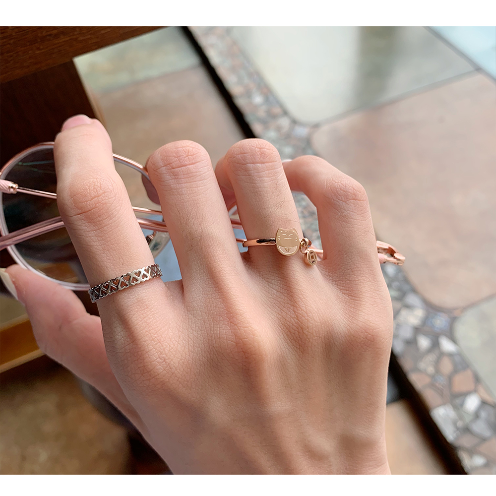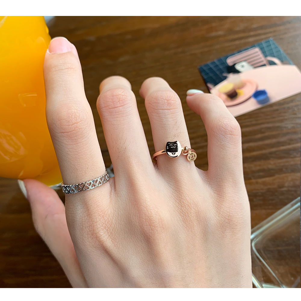 日韓版玫瑰金戒指女ins可愛招財貓咪指環卡通氣質甜美食指戒尾戒