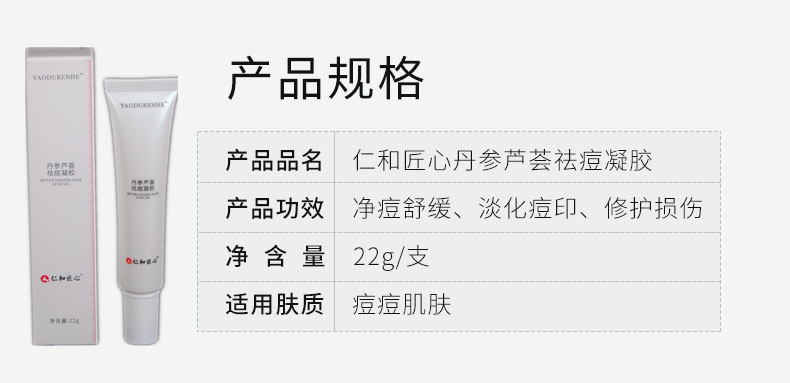 仁和藥業丹參蘆薈祛痘凝膠仁和匠心正品去痘印去痘膏神器痘肌修護