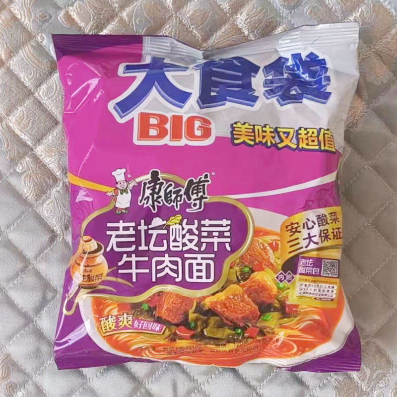 康師傅方便面大食袋一倍半老壇酸菜牛肉面162克袋裝泡面整箱包郵