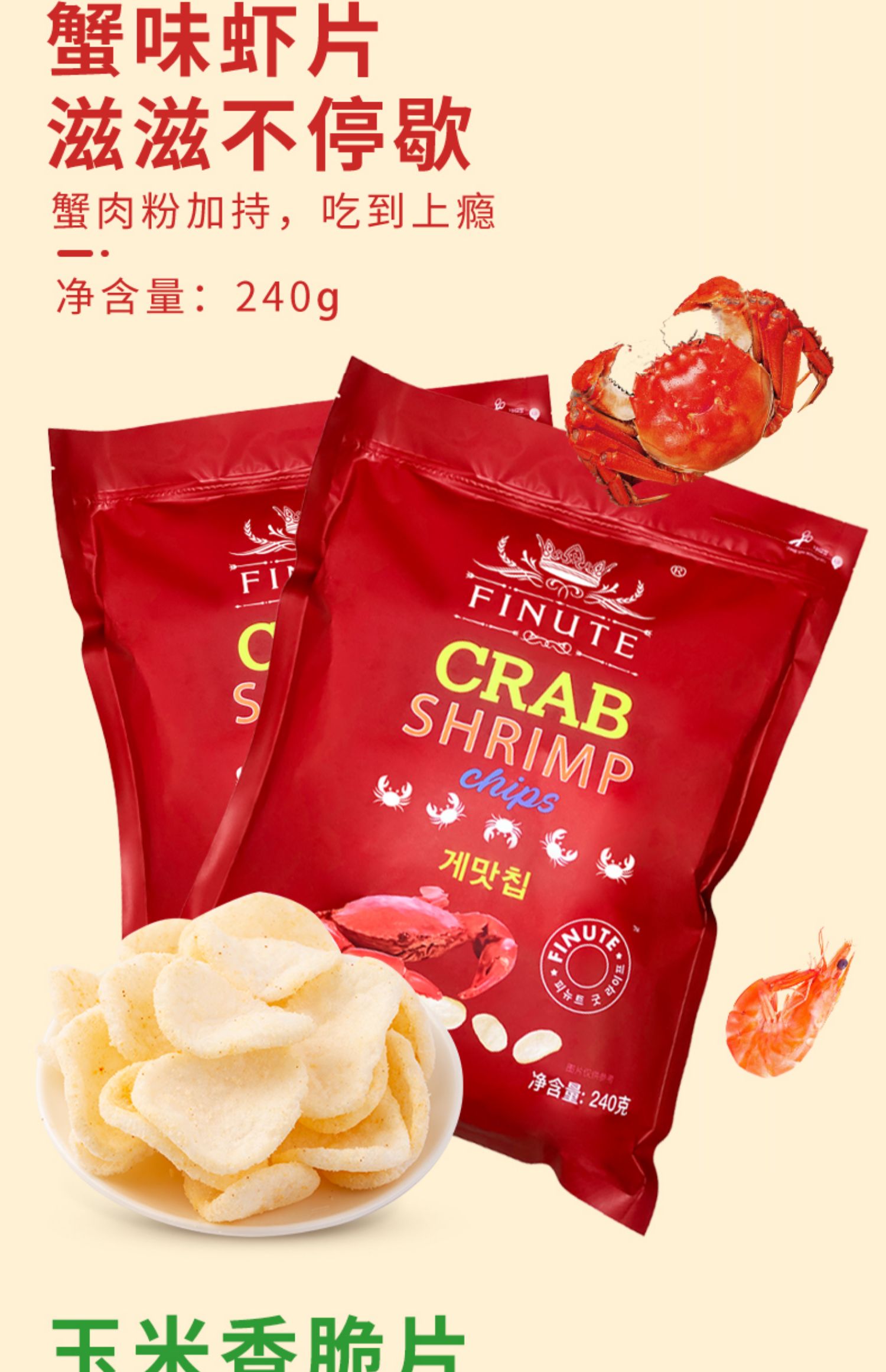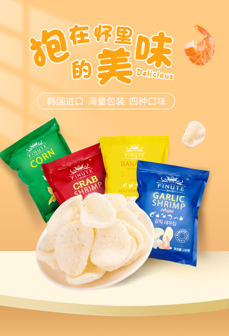 finute趣萊福蝦片韓國網紅蒜味薯片