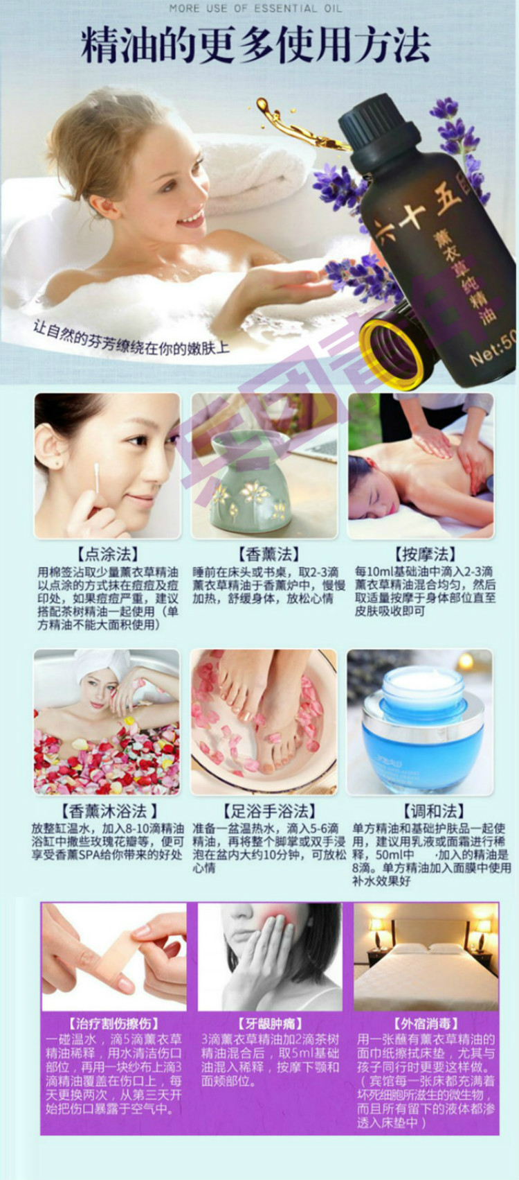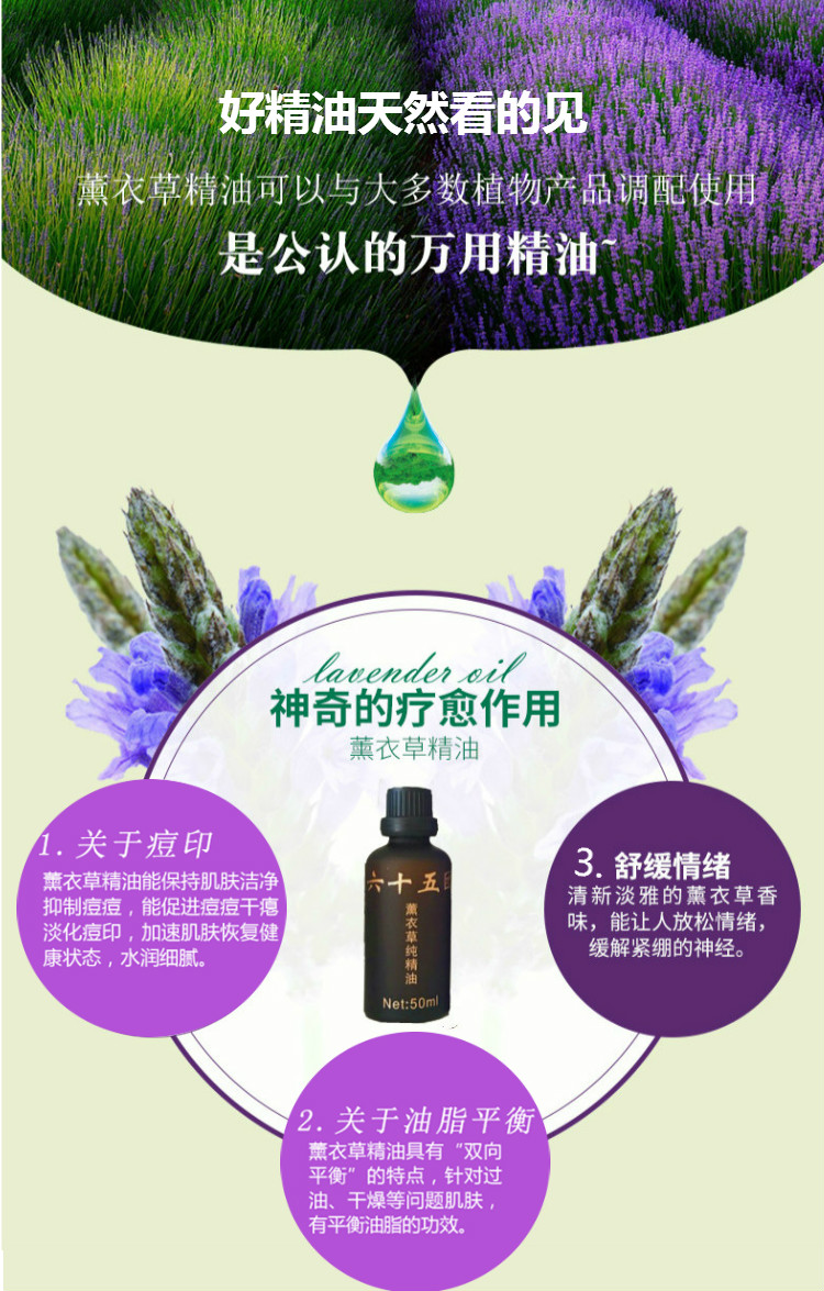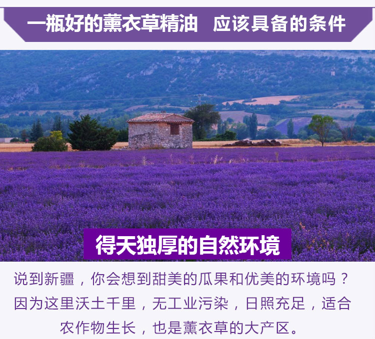 新疆伊犁65團薰衣草單方純精油50ml安神助眠香薰芳療精油護膚按摩