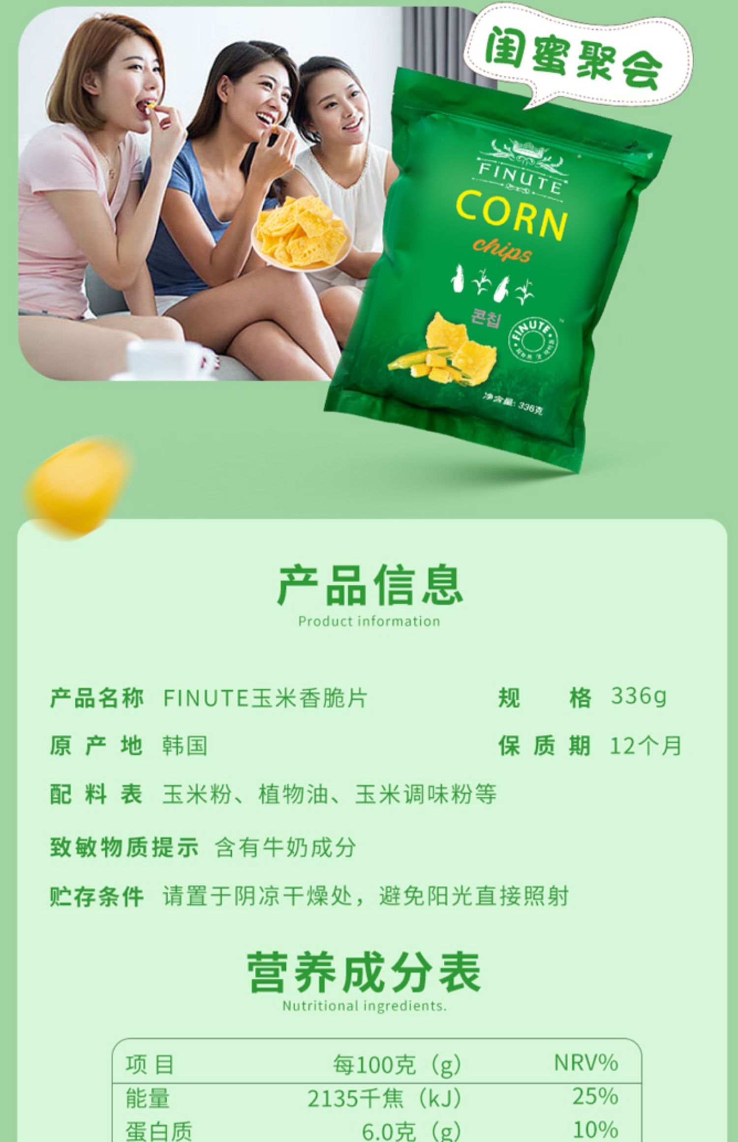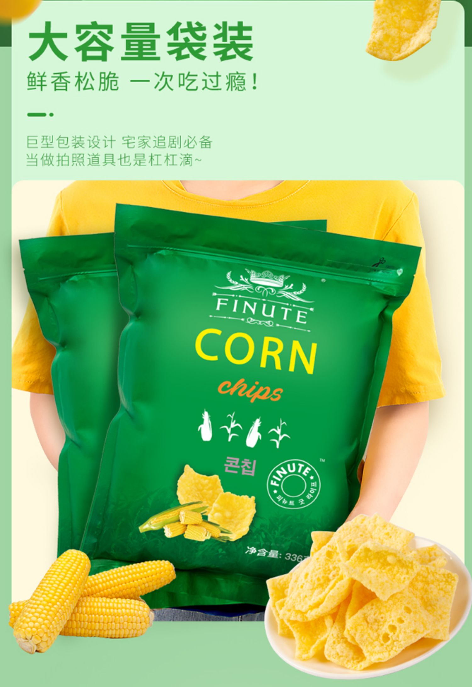 FINUTE趣萊福玉米香脆片336克韓國進口原裝大包膨化零食禮包
