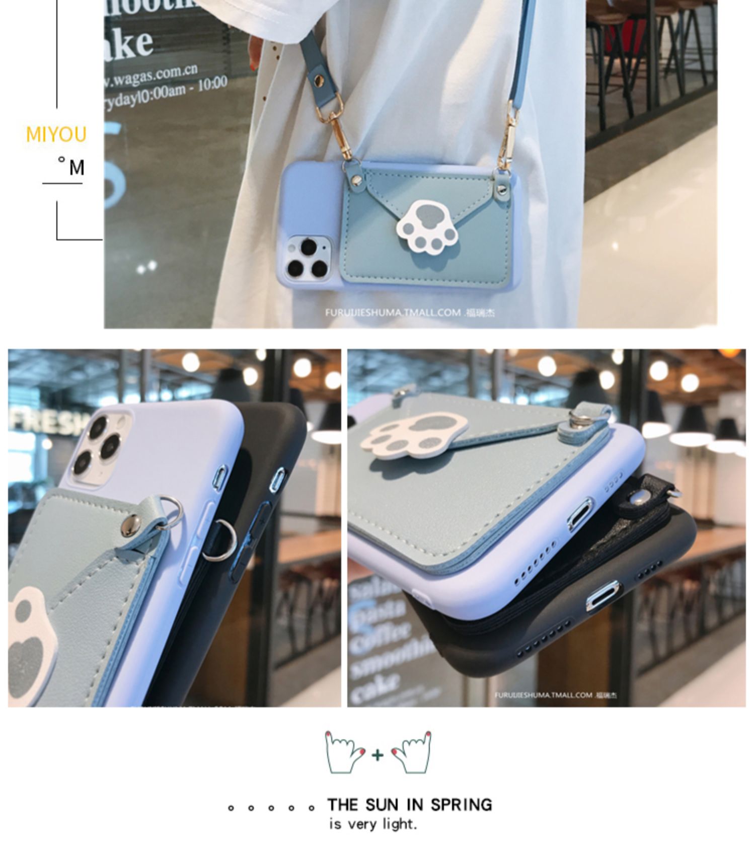 創意貓爪適用華為mate40pro手機殼mate50斜跨背帶p60零錢包p50pro可插卡nova11/10/9/8可愛榮耀90/80軟殼70女