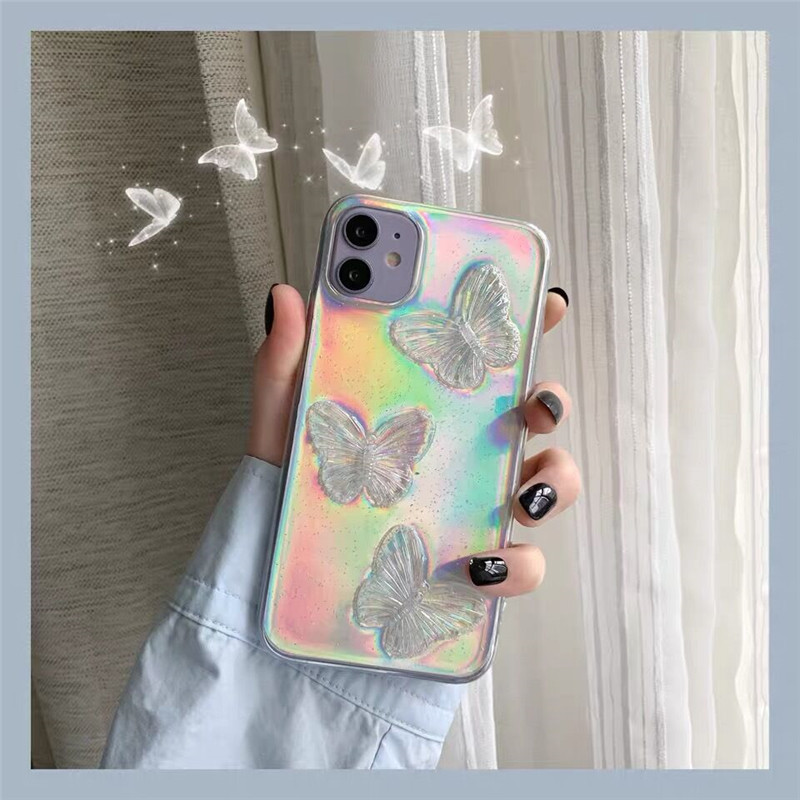 鐳射立體蝴蝶適用蘋果13promax手機殼12/xsmax滴膠11軟殼 7/8plus