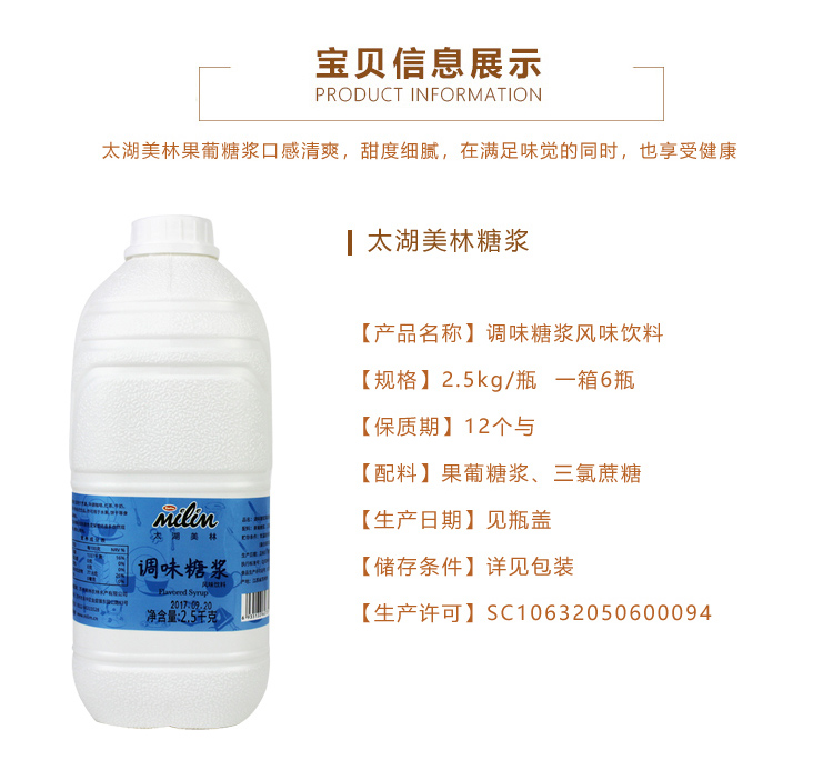 太湖美林果糖原味調味糖漿2.5kg*6瓶奶茶咖啡果汁原料果葡糖漿F55