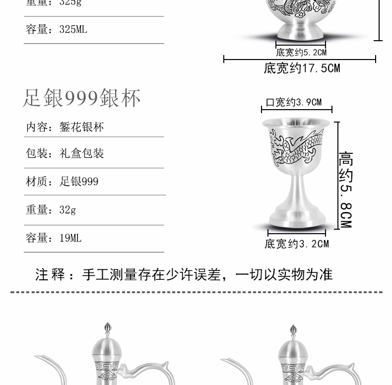 永華禧寶足銀999銀酒具套裝銀酒杯