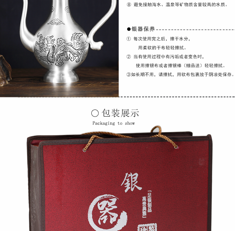永華禧寶銀酒具酒杯足銀999銀壺銀杯牡丹酒具荷花龍鳳酒具套裝