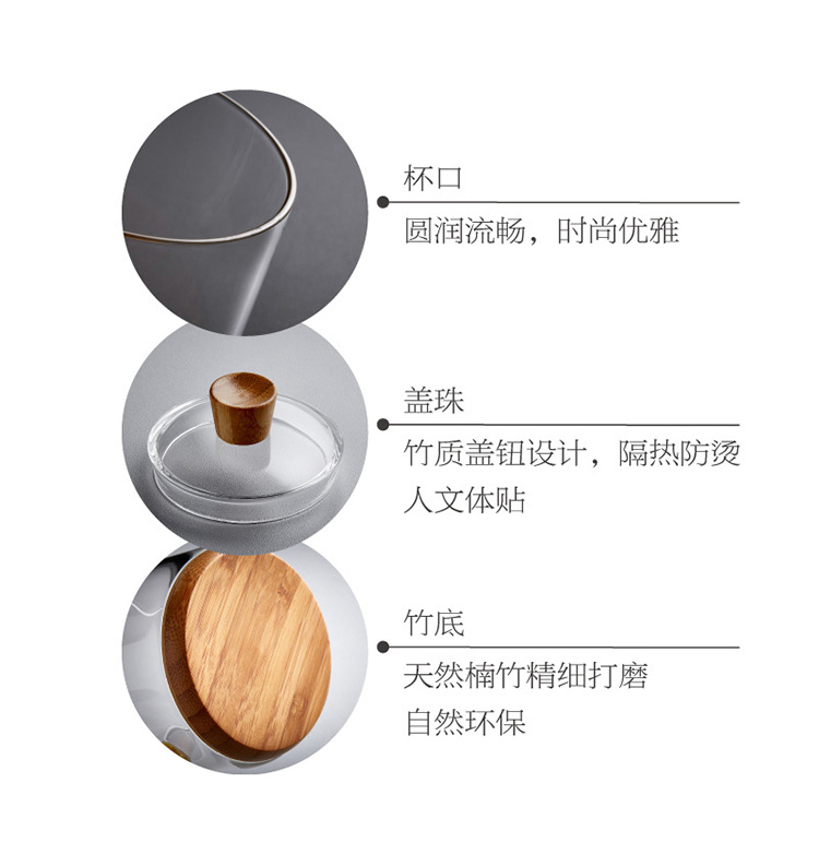 錘紋加厚耐熱玻璃三件式帶蓋馬克杯