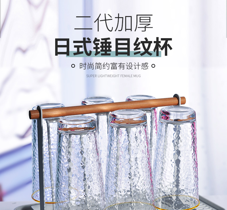 加厚日式錘紋玻璃杯6只套裝家用耐熱水杯子創意簡約清新森系ins風