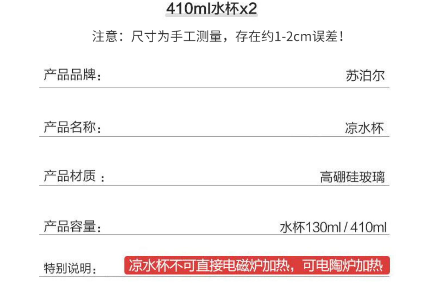 蘇泊爾玻璃冷水杯涼水杯家用耐熱高溫大容量泡茶杯涼白開水杯套裝