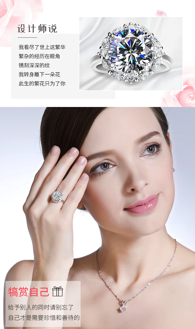 18k白金莫桑石鉆戒女六爪仿真鉆石