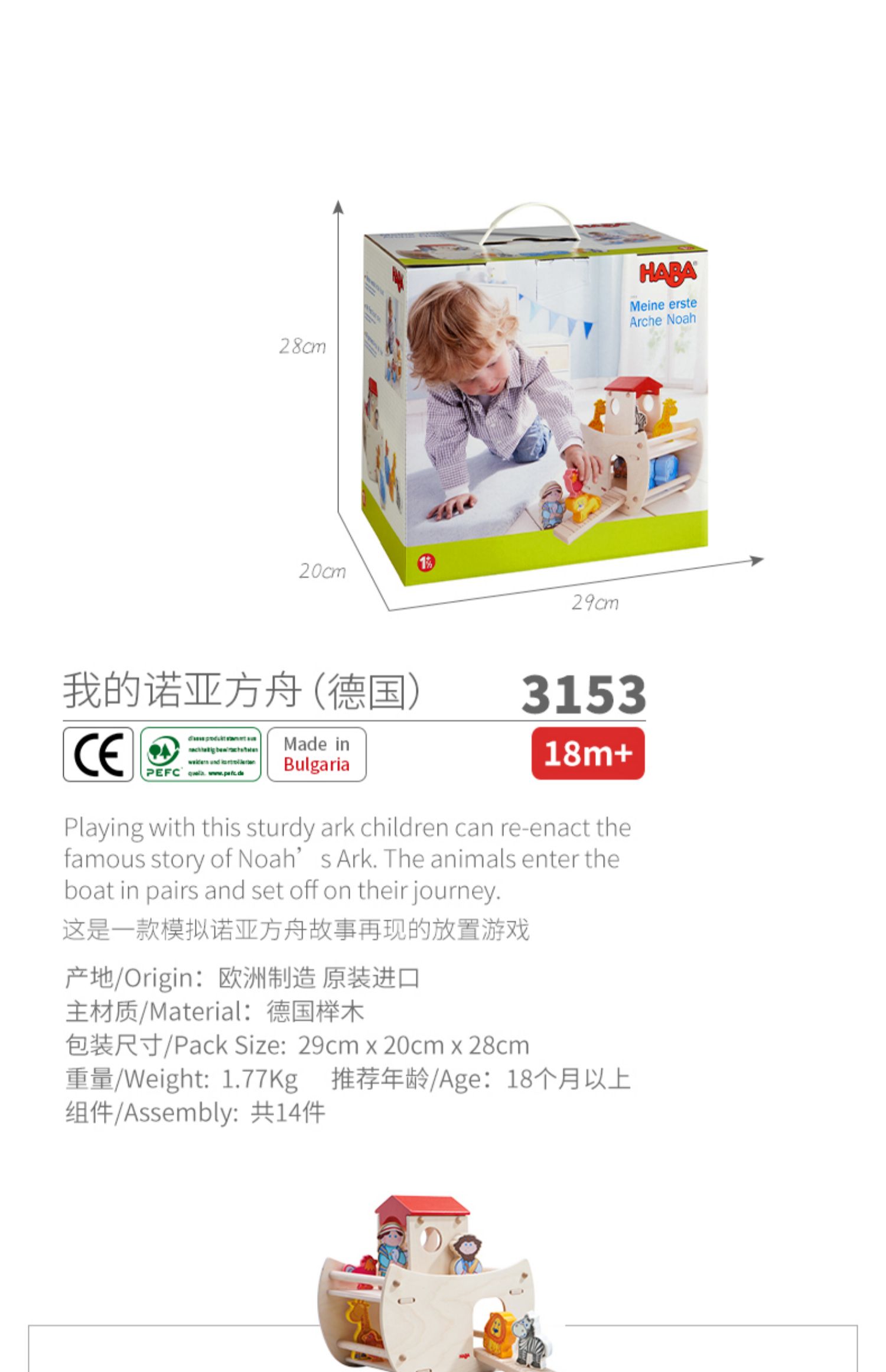 德國HABA情景游戲3153諾亞方舟過家家角色扮演1-2歲語言表達能力