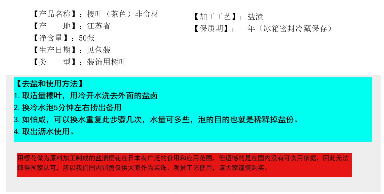 99¥ CZ0001 cRgrWYWqvHc¥ https://m.tb.cn/h.5h5RUGK 裝飾用 綠色/茶色鹽漬櫻葉50張日式料理壽司長命寺餅鹽漬櫻花葉 --------------------- 裝飾用 綠色/茶色鹽漬櫻葉50張日式料理壽司長命寺餅鹽漬櫻花葉 --------------------- 【原售價】6.8元 【優惠券】1元 【券后價】5.8元。