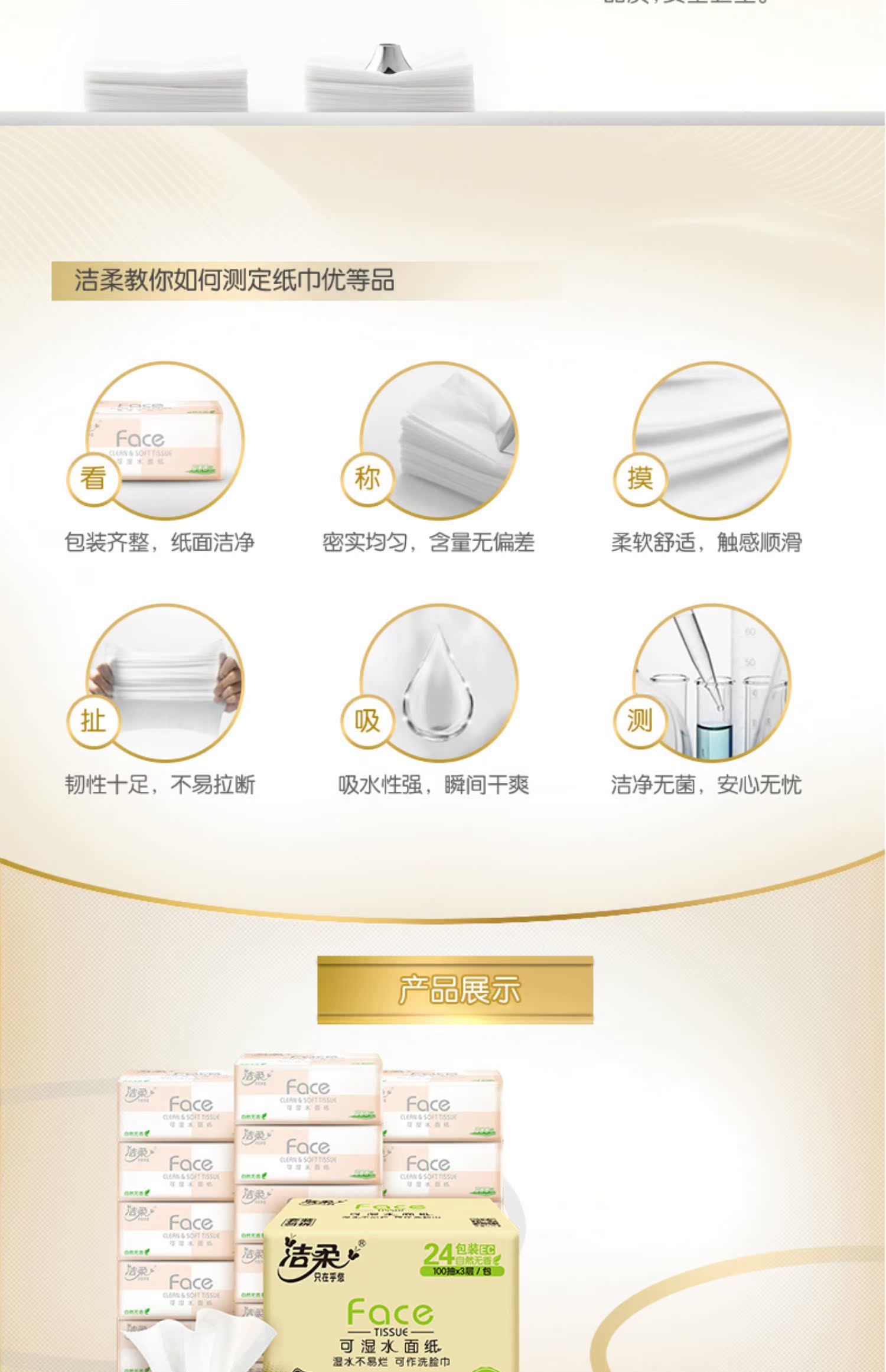 潔柔抽紙紙巾抽整箱24包餐巾紙實惠裝家用可濕水面巾紙face衛生紙