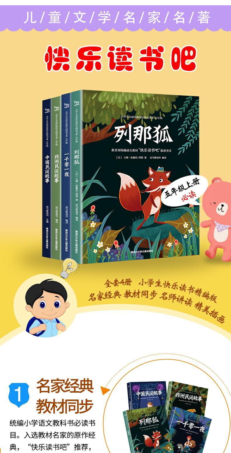 中國民間故事 快樂讀書吧五年級上冊全套4冊 列那狐的故事一千零一夜非洲民間故事5上經典童話故事書人教版小學生課外閱讀小紅帆