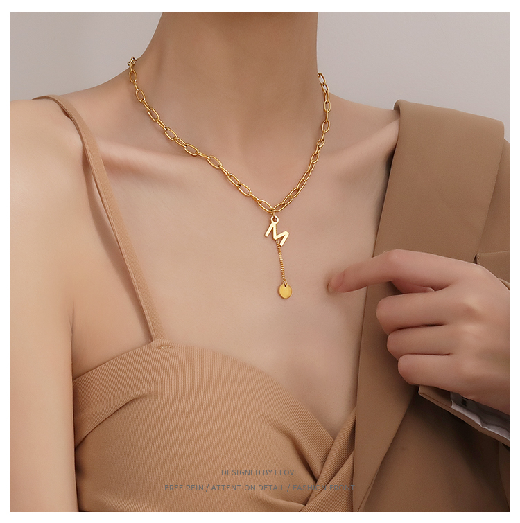 韓國復古簡約新款M字母流蘇項鏈女ins潮網紅氣質冷淡風鎖骨鏈吊墜