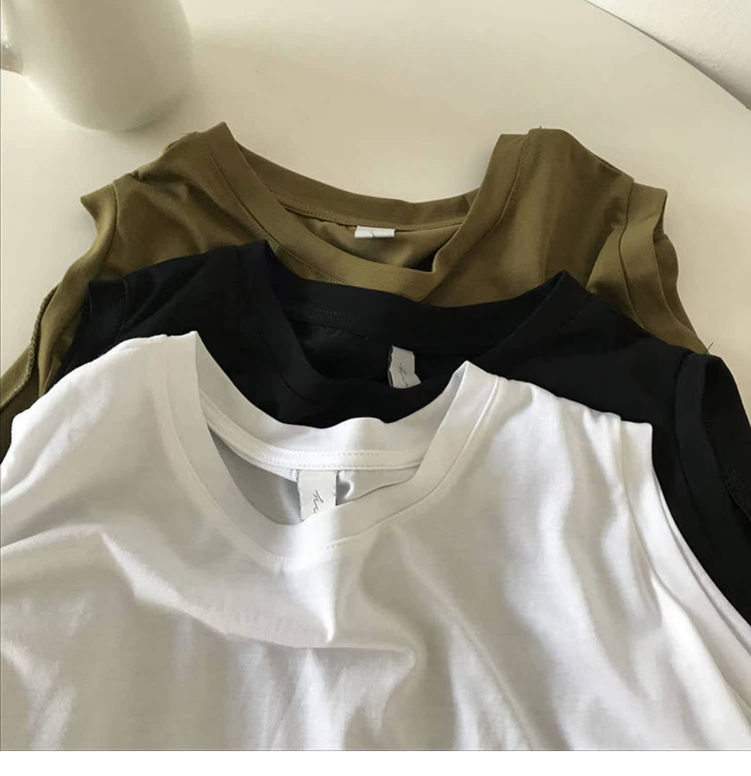 u領短袖修身正肩純色低領螺紋t恤