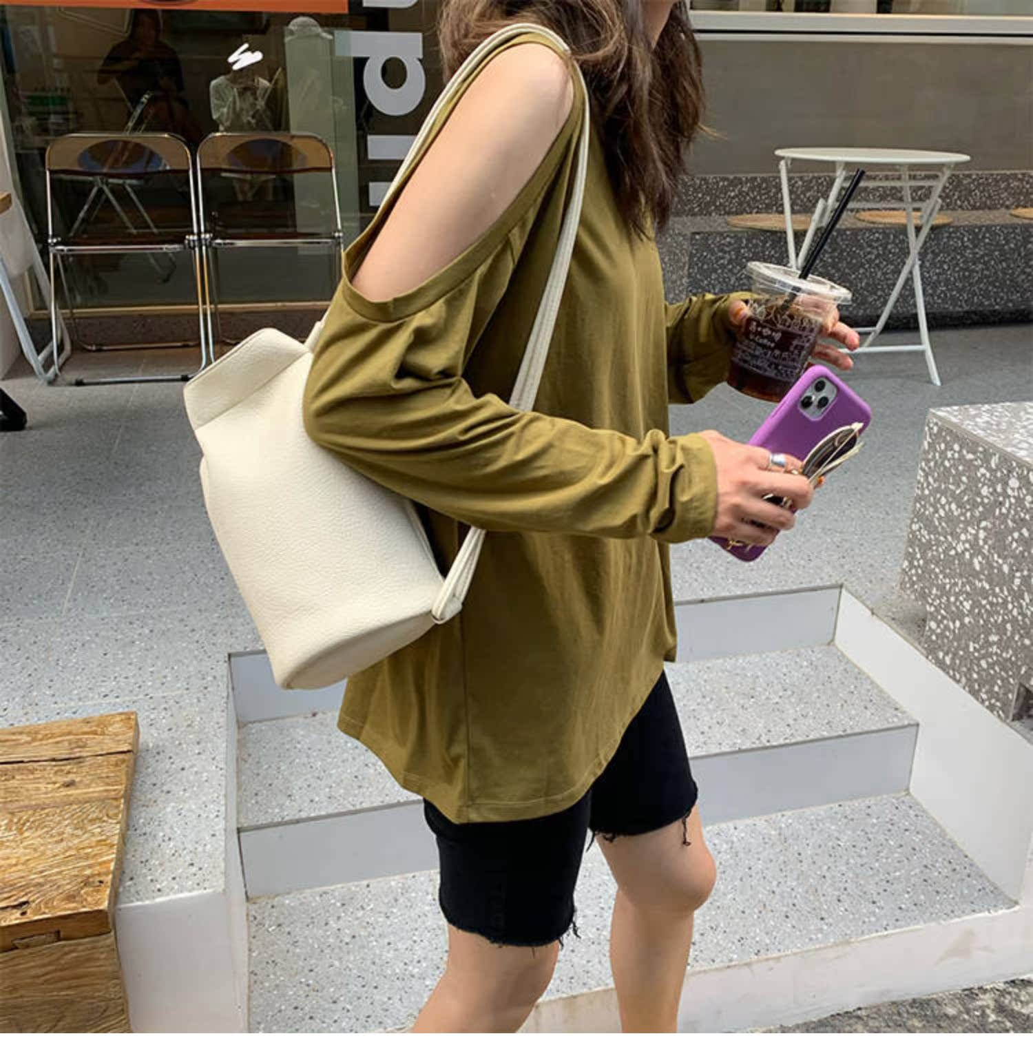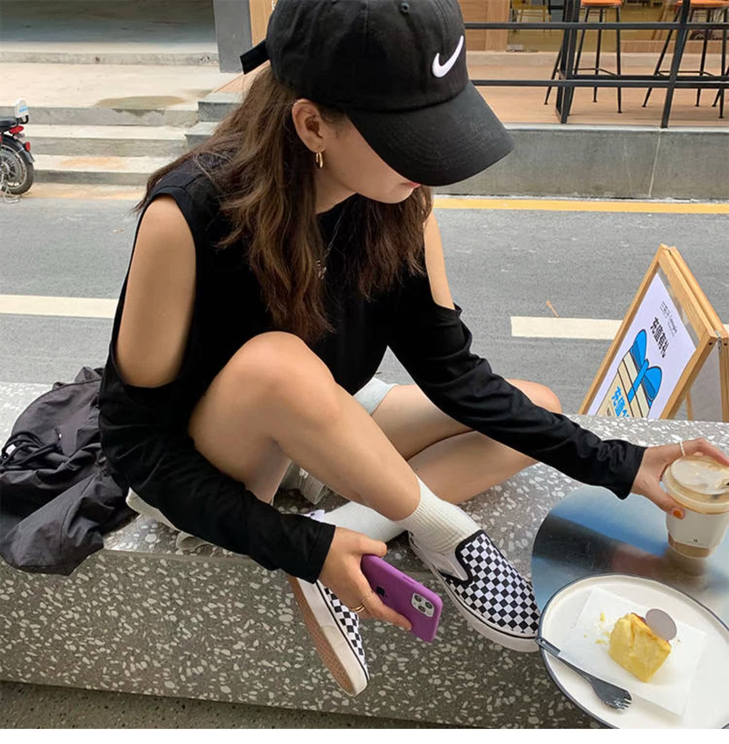 純棉防曬衣女長袖t漏肩純色夏季露肩上衣早秋寬松慵懶體恤衫薄款